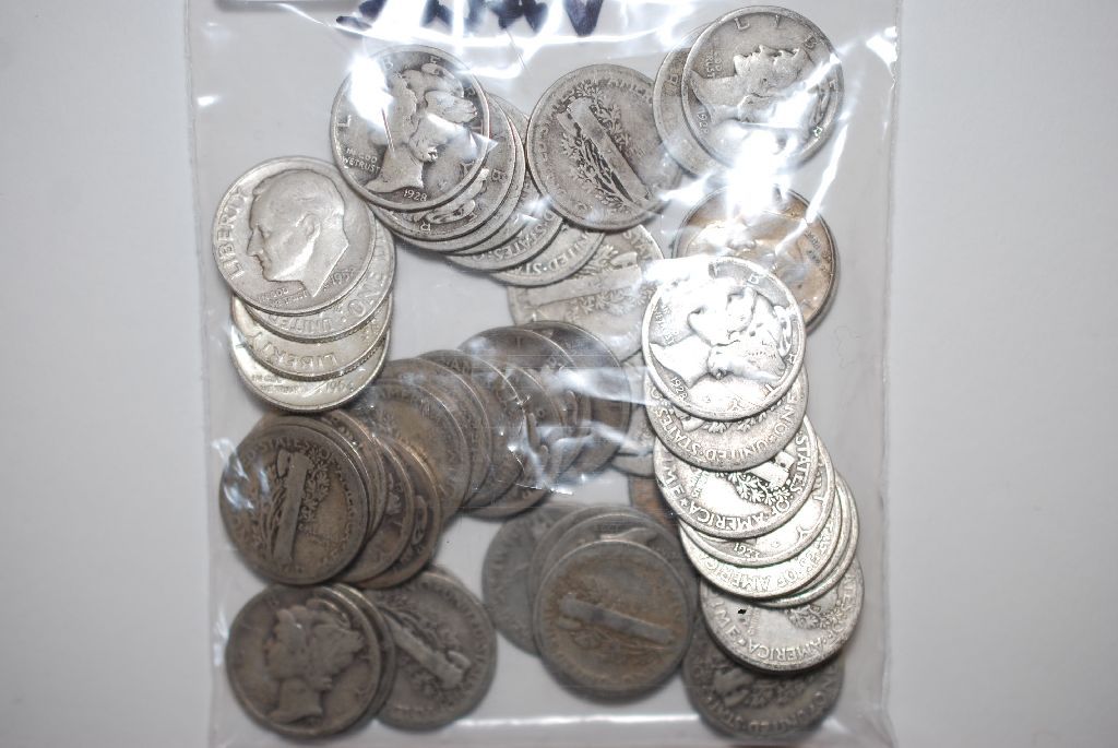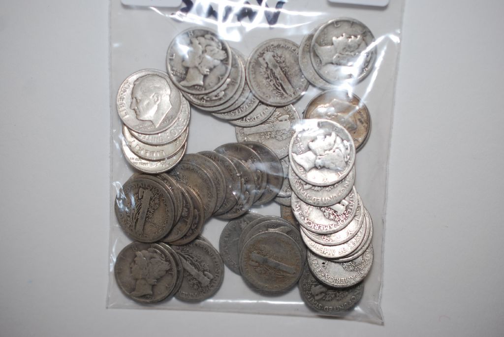 Mercury Dime; Various Dates & Conditions; Lot of 44 & Roosevelt Dime; Various Dates & Conditions; Lot of 6; Total Lot of 50; EST. $100-150