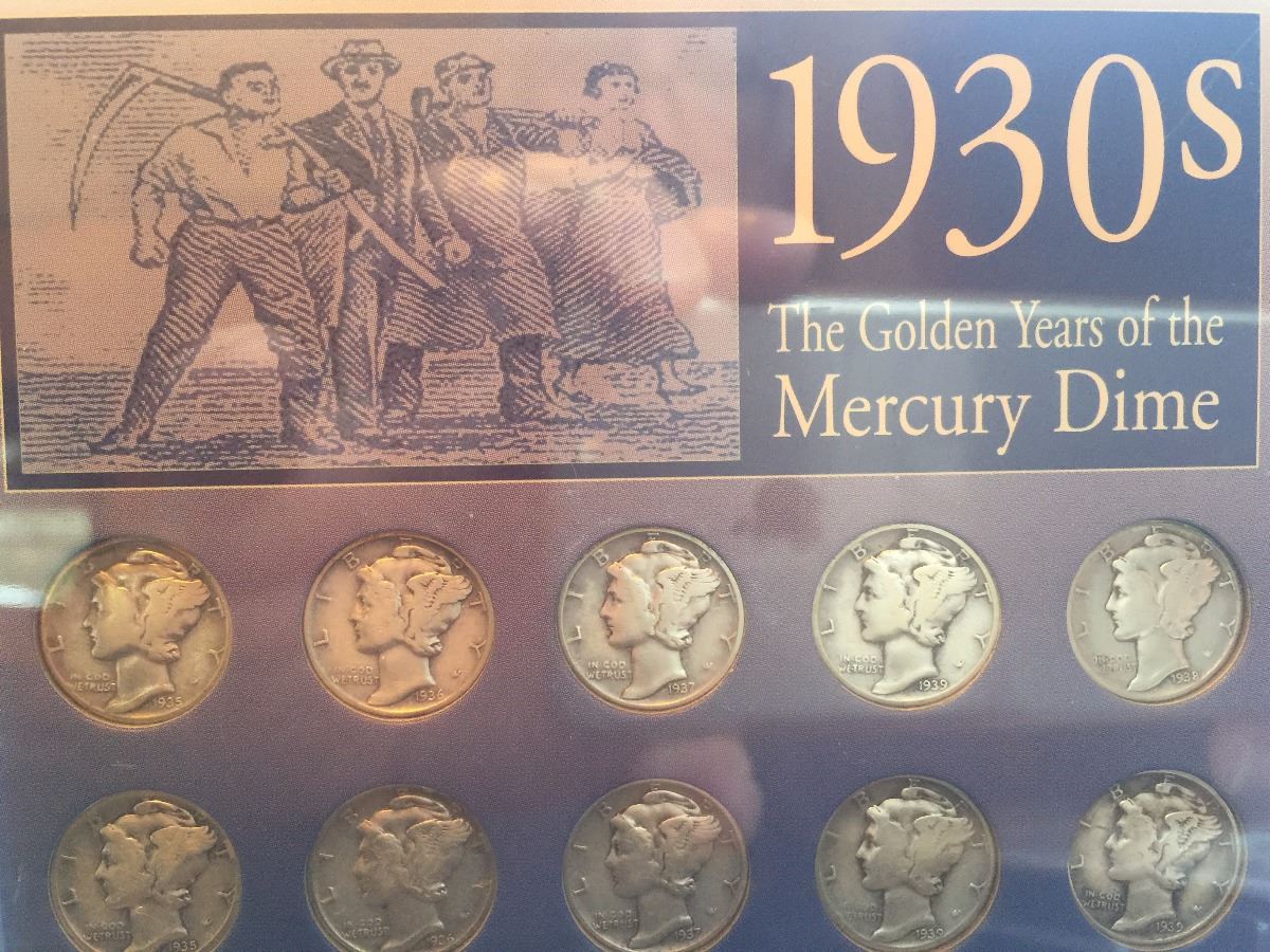 10pc 1930 Mercury dimes collection in plastic display case