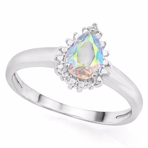 Pear cut 2/3 carat Mercury Mystic Topaz ring with 0.01ctw genuine diamond accent set in platinum over sterling silver. Size 7. 1.9g