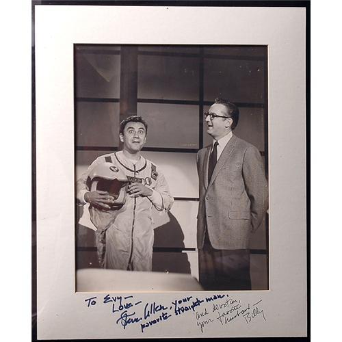 <Our item number 138585><B>Mercury Program, c1960s, Steve Allen & Bill Dana Autographs.</B> Signed on the mat (14x17"), surrounding a black and white photo (10.5x14") of Jose Jimenez on the Steve Allen Show. The mat is inscribed: "To Evy - Love - Steve Allen, your favorite straight man". It is also inscribed: "And devotion, your favorite husband, Billy". Obviously Evy was (and is) the consignor's wife. A lovely lady and well deserving of having this photo inscribed to her. She was the "power" behind the throne of Bill's career. Minor faults, but an attractive piece of memorabilia. <BR>Estimated Value $350 - 500. <I><BR>Ex. the comedian Bill Dana/Jose Jimenez collection.</I> <BR><BR>Our item number 138585<BR><IMAGES><P ALIGN="CENTER"><IMG SRC="http://www.goldbergcoins.net/liveauction/49jpegs/138585.jpg"> </P></IMAGES>