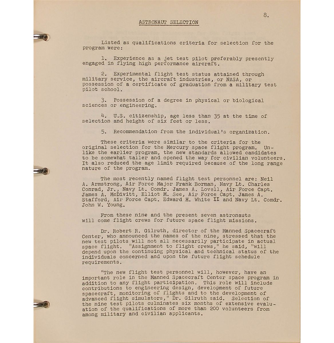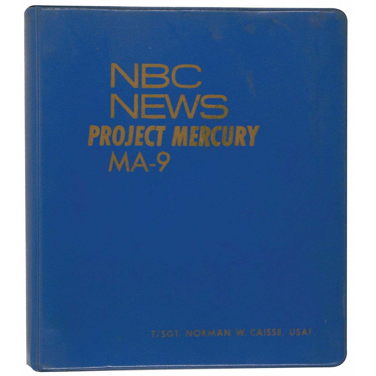 Rare NBC News Project Mercury MA-9 binder, 10.25 x 11.5, 186 pages. Handbook that covers various matters of the Mercury program, including astronaut biographies, details on the spacecraft, the flight plan, and objectives of the future Gemini program. Scattered marks and soiling to the binder and light toning to the pages, otherwise fine condition. The first such volume we have seen.