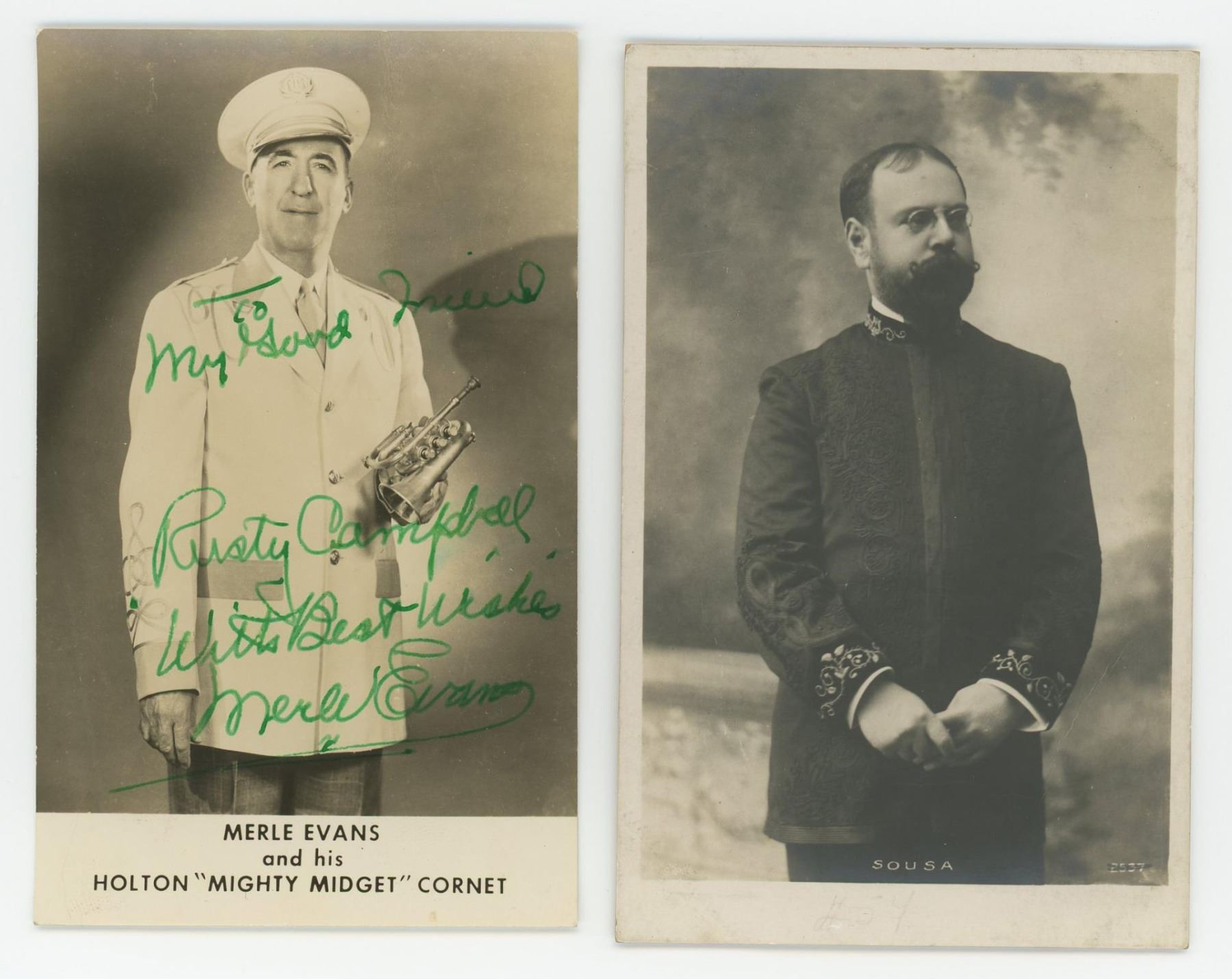 Featuring Merle Evans, famously known as the bandmaster for the Ringling Bros. and Barnum & Bailey Circus for 50 years, and John Philip Sousa, the renowned American composer and conductor famous for his military marches. One is signed by Merle Evans.