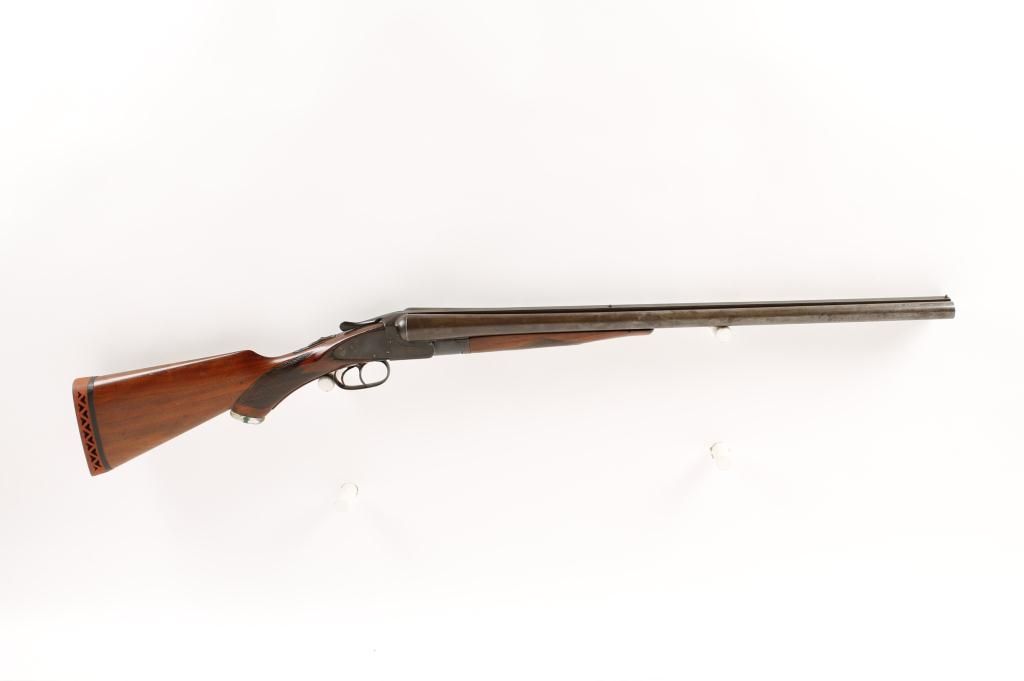 Meriden Mdl "The New Aubrey" 12 ga SN:41082Double barrel shotgun with 24" barrels. Checkered pistol grip wood stock and forearm. Odd clear cap on bottom of grip. Fair bore and action. Condition: Fair with metal a dark patina.Wood is good.