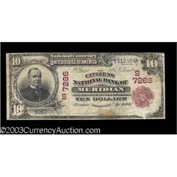 <TABLE cellSpacing=0 cellPadding=0 width="100%" bgColor=#000000 border=0><TBODY> <TR><TD width="100%"><TABLE cellSpacing=1 cellPadding=3 width="100%" border=0><TBODY><TR><TD width="100%" bgColor=#79735c><FONT face=arial color=#ffffff size=3><B>Description</B> </FONT></TD></TR><TR><TD width="100%" bgColor=#ffffff><FONT face=arial size=2><B>Meridian, MS</B></I> - $10 1902 Red Seal Fr. 613 <B>The Citizens NB</B></I> Ch. # (S)7266<BR>A duplicate Red Seal from Meridian, this one VF or so as to paper quality but with some paper pulls and edge damage, a light brown stain at the bottom edge, and the back has toned to an interesting blue-green color. <B>Very Good</B></I> or so overall, and still rare enough to realize. . . (2,500-3,500 ) </FONT></TD></TR></TBODY></TABLE></TD></TR></TBODY></TABLE><BR><TABLE cellSpacing=0 cellPadding=0 width="100%" bgColor=#000000 border=0><TBODY><TR> Important notice: Heritage usually auctions material at the rate of 200-250 lots per hour. On some occasions eBay Live bid software or the Internet may not be able to keep up with the pace of the auction. We recommend placing a realistic absentee bid now as insurance to avoid disappointment. Occasionally the auctioneer may eliminate or reject an eBay Live bid, and the auctioneer may also reopen a lot after the close of the eBay live bidding (usually because we missed an audience bid), and may reject your bid even if it shows you as the winning bidder. By bidding via eBay Live, you agree that Heritage may award the lot to another bidder at its sole discretion under the circumstances described above or any other reasonable circumstances. Also please note that all Heritage lots purchased through eBay Live carry a 20% Buyer's Premium. Please make sure you read the Terms and Conditions before you bid.</TR></TBODY></TABLE>