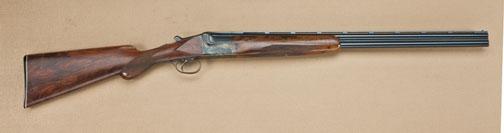 Merkel 28ga over/under shotgun, 25-7/8” barrels choked Modified over Improved Cylinder. Factory ventilated rib, single trigger, auto ejector, cocking indicators, checkered walnut stock, serial #71834. Model 200E, made 1970’s. The gun remains in fine to excellent original condition with 97-99% original blue and case hardening just starting to age and tone, some minor losses at the edges. The stocks are very good plus with a couple of minor marks from storage and light use. The stock measures 14-5/8” to the end of the wood, 14-3/4” to the end of the factory composite buttplate. The action is tight, the bores are dirty, but at least very good and would probably clean to excellent. From the Robert Petersen Collection. Est: $2,000 - $4,000