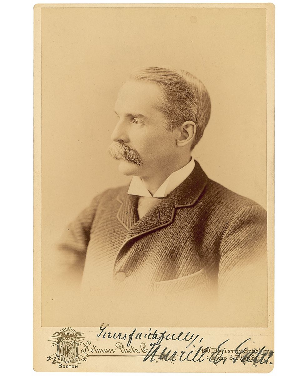 Educator (1848–1922) who served as president of Rutgers and Amherst. Original 4.25 x 6.5 cabinet photo by Notman of Boston, signed in the lower border in black ink, “Yours faithfully, Merrill E. Gates.” In fine condition, with a few brushes to signature.