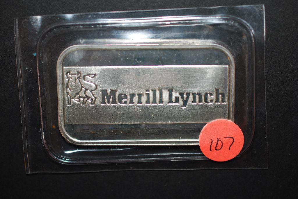 Merrill Lynch Commemorative Silver Ingot; .999 Fine Silver 1 Oz.; EST. $35-45