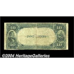 Merrill, WI - $10 1882 Date Back Fr. 540 The NB of Merrill Ch. # (M)4736A very scarce Merrill bank which issued Second Charter notes only and disappeared after failing to renew its charter in 1912. The new census shows just seven examples extant from here. Pen signed Fine. <BR><BR><B>Important notice:</B> Heritage usually auctions material at the rate of 200-250 lots per hour. On some occasions eBay Live bid software or the Internet may not be able to keep up with the pace of the auction. We recommend placing a realistic absentee bid now as insurance to avoid disappointment. Occasionally the auctioneer may eliminate or reject an eBay Live bid, and the auctioneer may also reopen a lot after the close of the eBay live bidding (usually because we missed an audience bid), and may reject your bid even if it shows you as the winning bidder. By bidding via eBay Live, you agree that Heritage may award the lot to another bidder at its sole discretion under the circumstances described above or any other reasonable circumstances. Since eBay bids are not shown to us until we open the lot on the floor, we treat those bids just like floor bids. In most cases the floor responds before the eBay bid is presented to us, due to Internet lag time, so for consistency we have made it a policy that floor bids are always considered first over tie eBay live bids. Also please note that all Heritage lots purchased through eBay Live carry a 20% Buyer's Premium. Please make sure you read the Terms and Conditions before you bid. <BR><BR><B>IMPORTANT ANNOUNCEMENT ABOUT RESERVES:</B> Heritage now divulges all reserves on its web site 7 days before every auction. If you want to know whether the reserve on this lot has been met, and if not, what the reserve amount is, please visit this lot page on the HeritageCoin.com web site, or email: bid@HeritageGalleries.com