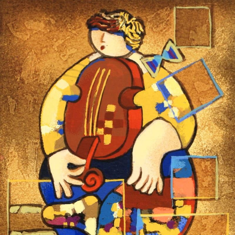 "Merry Violin" is a limited edition serigraph on paper by Dorit Levi, numbered and hand signed by the artist. Includes Certificate of Authenticity. Measures approx. 7.5" x 10" (border), 5.5" x 8.5" (image).