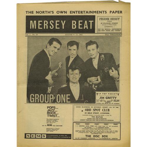 <B>"Mersey Beat" #28</B></I> A copy of the August 9-23, 1962 issue in Fine condition with mild wear to the spine and edges, a horizontal fold crease, and mild to moderate tanning. An extremely rare piece of Beatle memorabilia. <BR><BR><B>Import