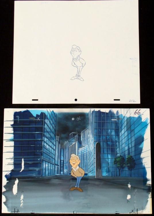 Mervyn Edward "Merv" Griffin, Jr. was an American television host, musician, actor, and media mogul. He began his career as a radio and big band singer who went on to appear in movies and on Broadway. * * Original Animation Cel & Production Background & Drawing * * Medium: Hand painted acetate celDetails: Animation notations and peg holes * * Size of background: 10 1/2 x 14 inches Size of drawing: 10 1/2 x 12 1/2 inches * * Size of cel: 10 1/2 x 12 1/2 inchesCondition: Very good * This is an original hand-painted cel set-up. Each one-of-a-kind set-up represents a slight change in position of the characters. When individually photographed and projected in rapid succession, the images appear to move. To created production cels, the original * animator's drawing is transferred onto an acetate cel (by hand-inking and/or photo copying). The cel is then hand-painted on the reverse side. The background accompanying this cel is an original hand-painted background. * * Traditional animation is a multi-step process which includes various types of art techniques. Drawings are a key part of the process, in which the animator creates the design and movement of the characters. Drawings are then transferred onto acetate cels * (by hand-inking and/or photo copying) to create a production cel, which is then hand painted on the back side, using paint colors chosen and approved by the creator of the series. * * * *