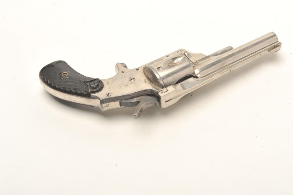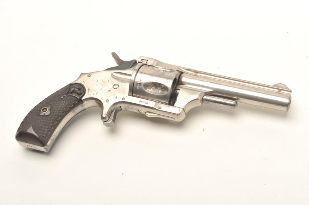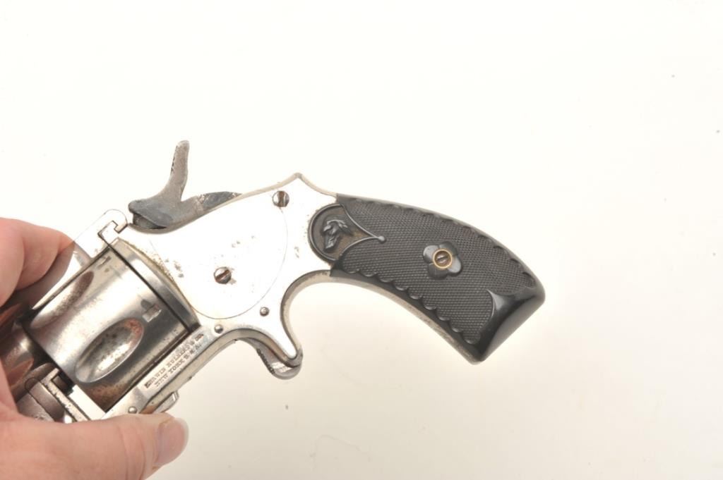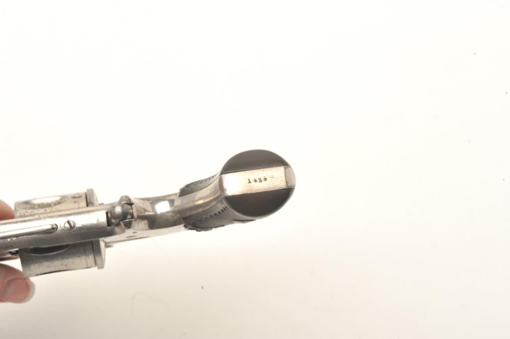 Merwin & Hulbert .38 single action revolver, S/N 1435. In very good condition with near fine grips. 60%-80% nickel with minor aging. (Antique) Est.: $300-$600