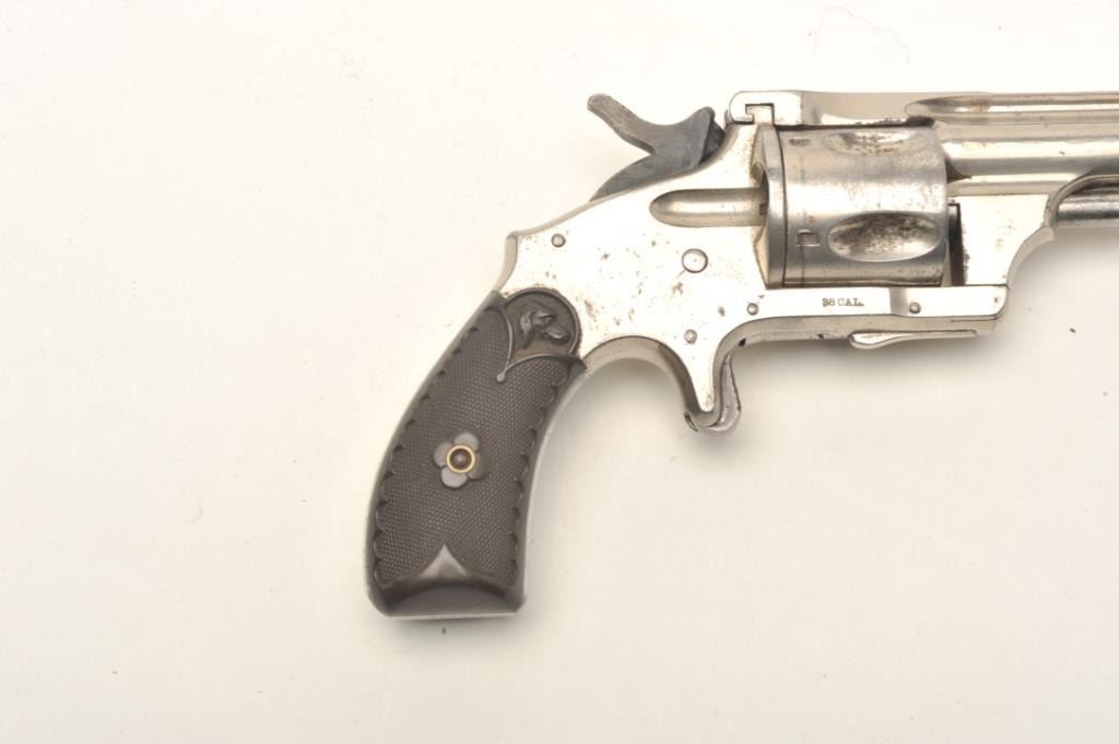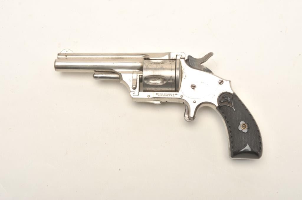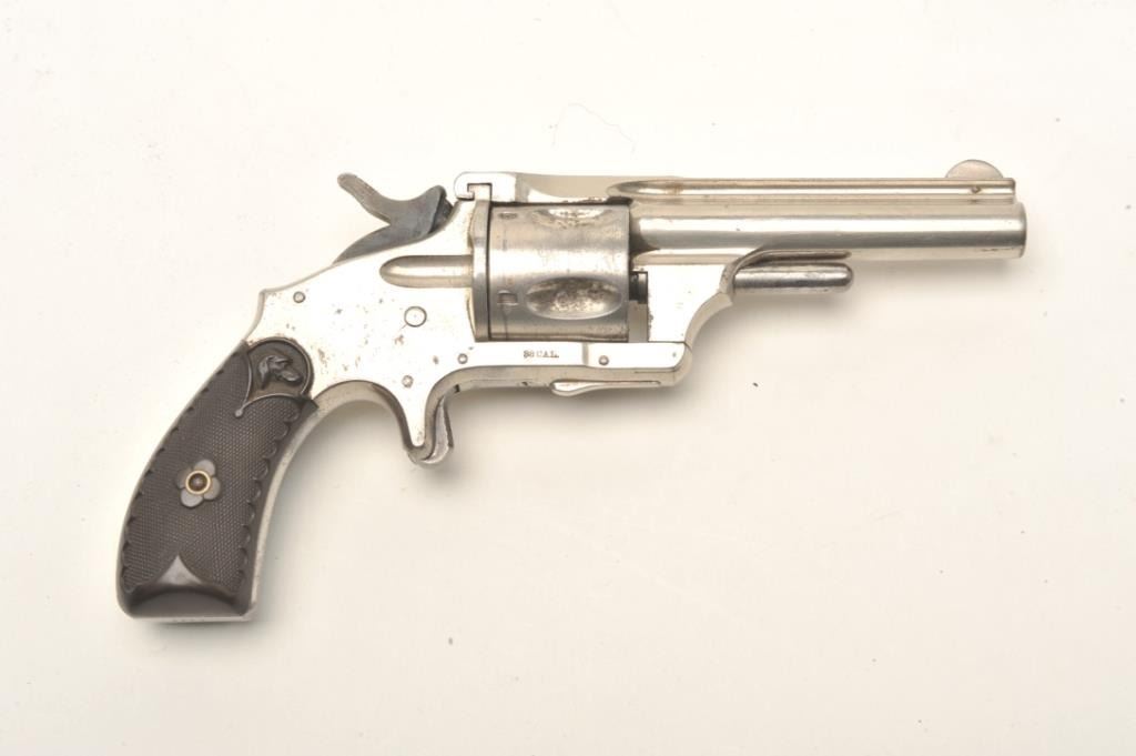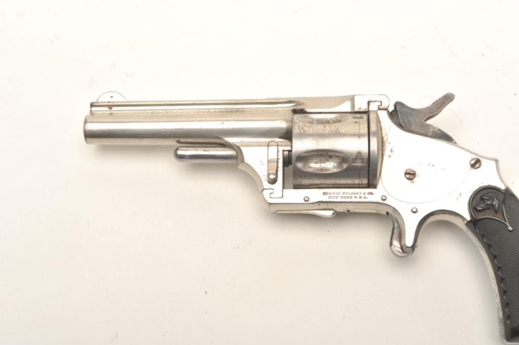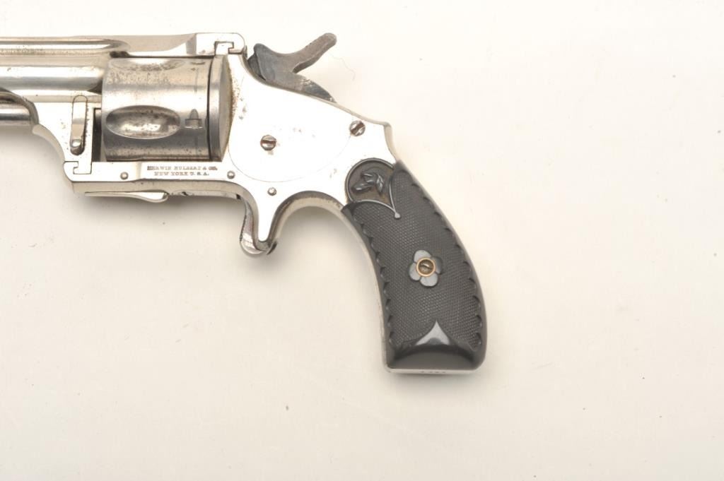 Merwin & Hulbert .38 single action revolver, S/N 1435. In very good condition with near fine grips. 60%-80% nickel with minor aging. (Antique) Est.: $300-$600