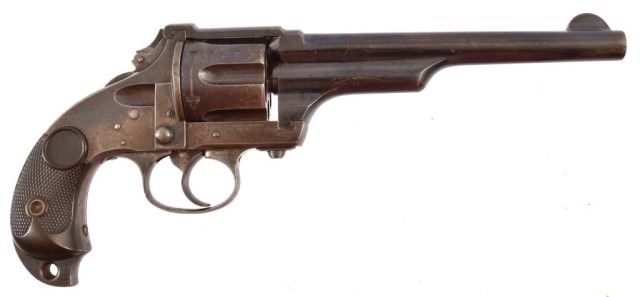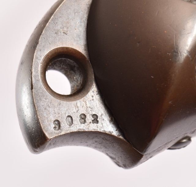 Belt Model double action .44-40 cal. bird head grips, 7" barrel. Serial no. 9082