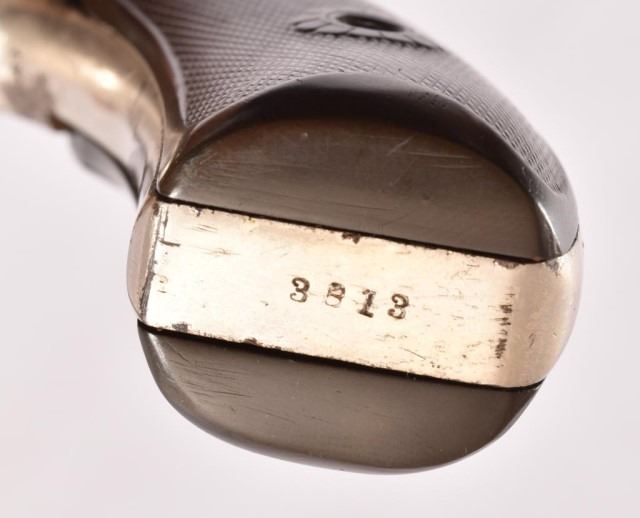 Spur trigger, square butt .38 cal, 3.75" barrel. No loading gate.