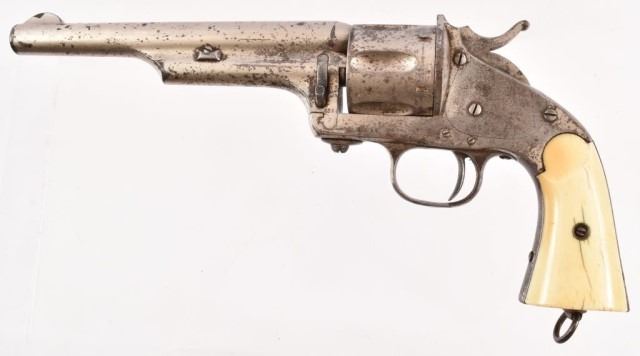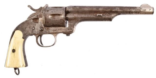 Belgian made copy, nickel Plate, ivory grips, 7" barrel. 44 cal.