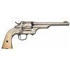 Condition: Very fine, with 80% plus of the untouched original nickel finish, showing mild frosting on the barrel and a darker tone on the cylinder and frame, scattered flaking and mild handling marks. Traces of bright case color are present on the hammer. Mechanically functions, but needs adjustment. Grips are slightly undersize, fine with a small chip on the upper front edges of both sides, mild age cracking and an attractive aged grain and color.