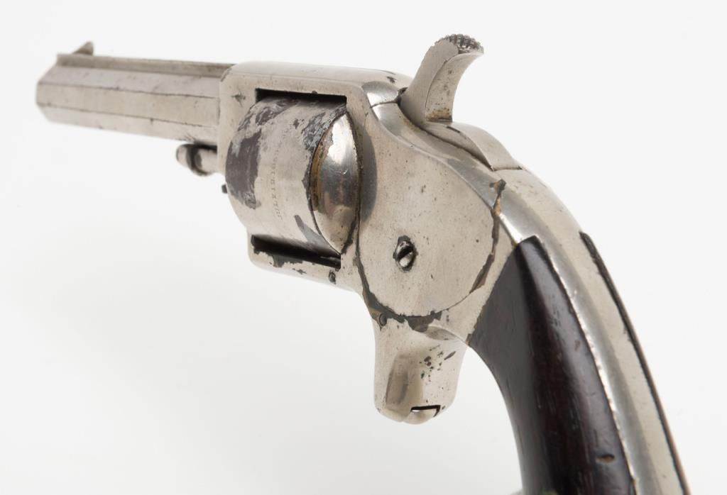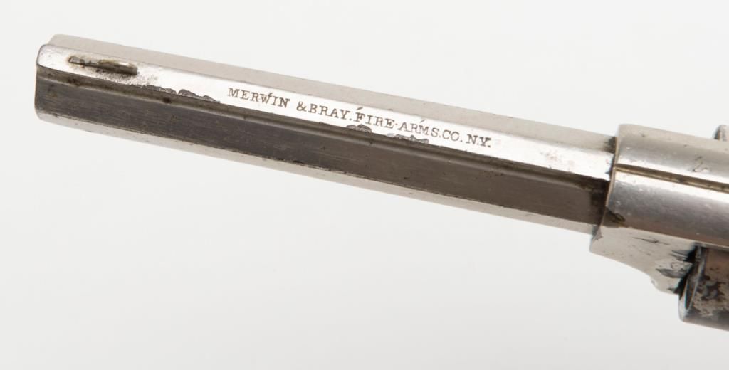 Merwin and Bray spur trigger revolver, .25 cal., 3-3/4” octagon barrel, nickel finish, wood grips,