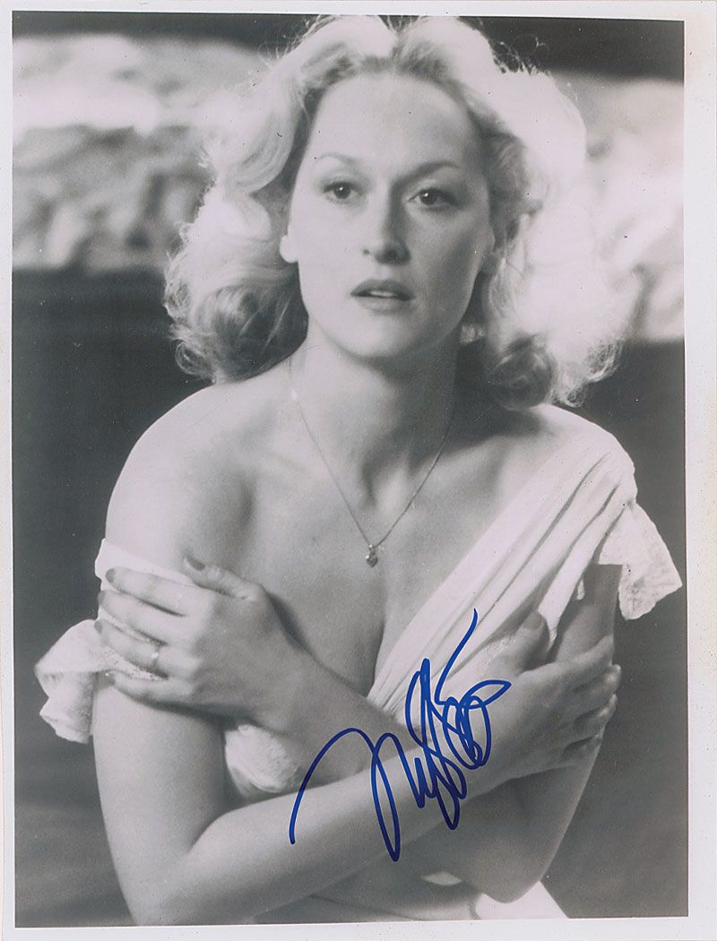 Satin-finish 10.5 x 14 photo from Sophie’s Choice, signed in person in blue felt tip. In very fine condition.
