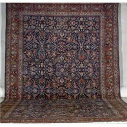 Meshed Rug, Post 1950, Blue ground with floral spray field within a palmette and, trellisin...