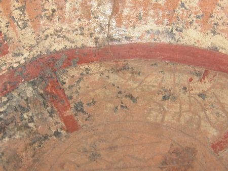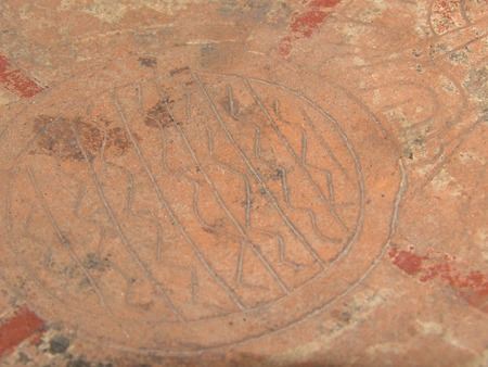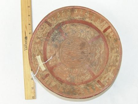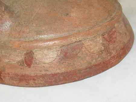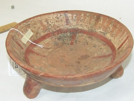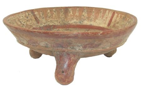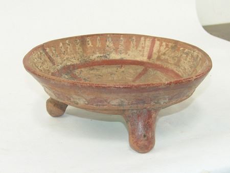 Prehistoric, Rare rattle-footed polychrome tripod bowl with painted and incised interior design. Very good condition, minor glued repair. *The Lots 671-680 & 121-130 in this auction come from a prominent private Seattle collection. The owner is knowledgeable and confident in his descriptions and the ages of the pieces.* 3-1/2" x 9"