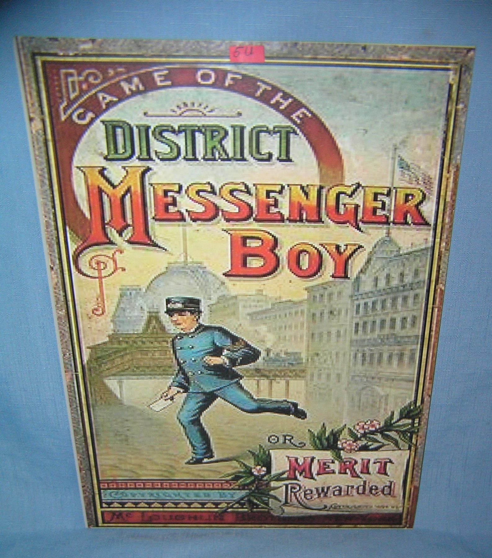 Messenger Boy retro style advertising sign printed on PVC hard board these signs are auctioned for there decorative and display purposes 12 inches by 16 inches est. value $50.00-$60.00