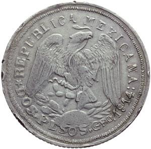 Monete e Medaglie Estere. Messico, Guerrero. 2 pesos 1914. KM 643. AG. qSPL. Guerrero era una delle zone occupate da Zapata nel sud del Messico, vennero aperte 7 zecche in questo Stato.