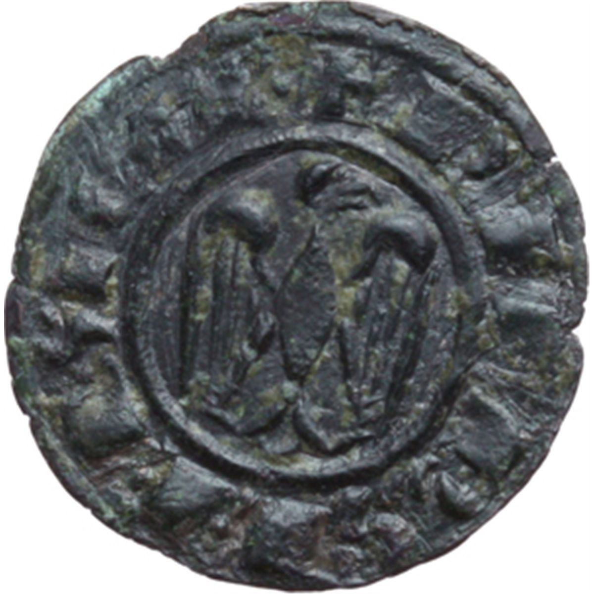 Monete e Medaglie di Zecche Italiane. Messina. Federico II (1197-1250). Mezzo denaro circa 1243. Sp. 127. MIR 113. MI. g. 0.31 RR. SPL.