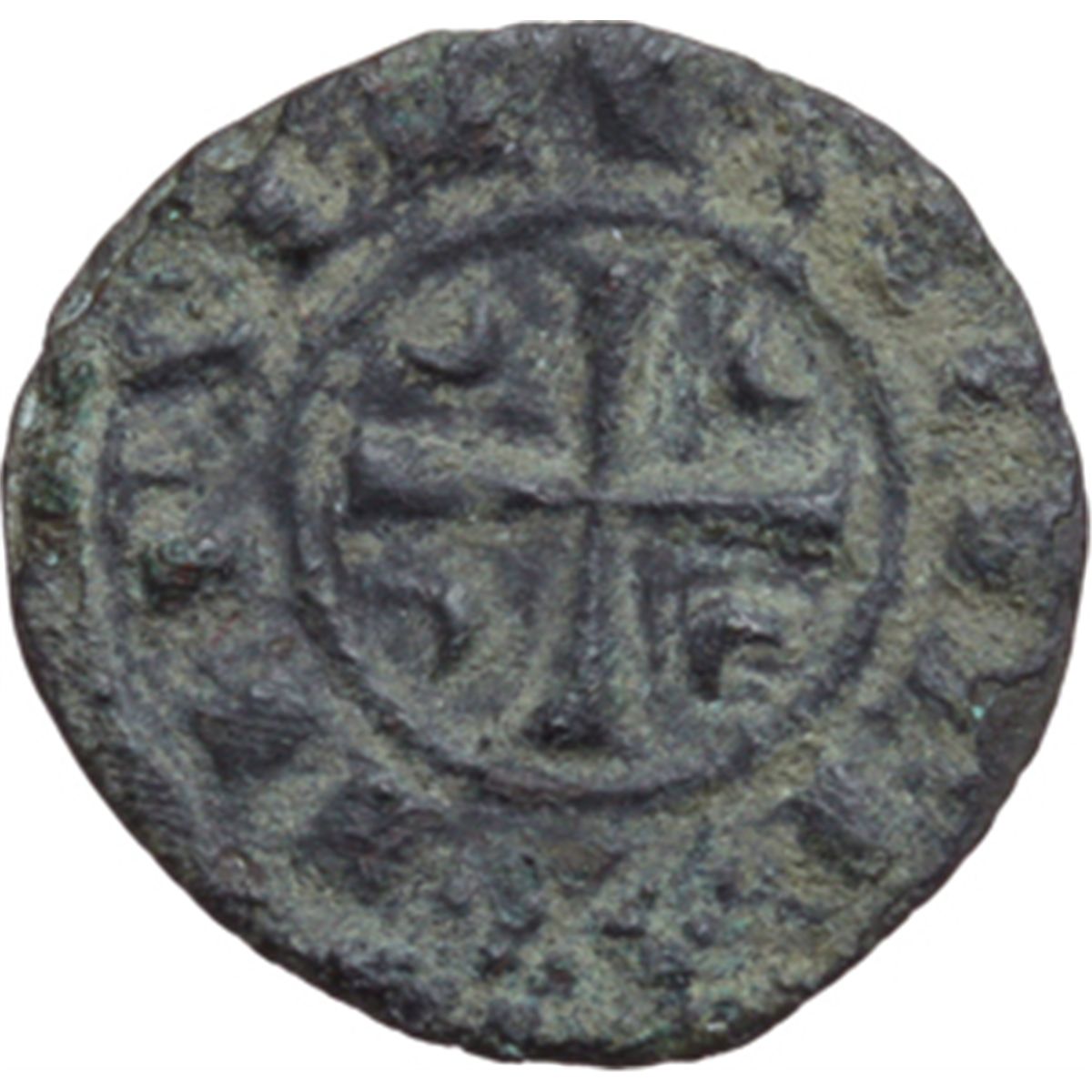 Monete e Medaglie di Zecche Italiane. Messina. Federico II (1197-1250). Mezzo denaro, circa 1245. Sp 136. MIR -. MI. g. 0.52 RR. qSPL.