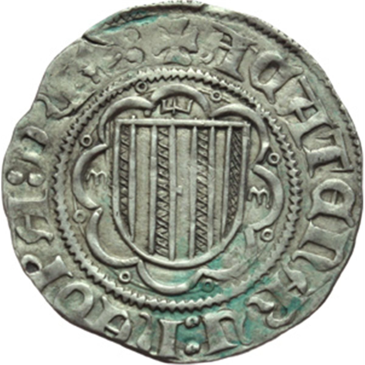 Monete e Medaglie di Zecche Italiane. Messina. Federico IV (1355-1377). Pierreale sigla M M. Sp.70/76 MIR 194/17. AG. g. 3.29 qSPL.