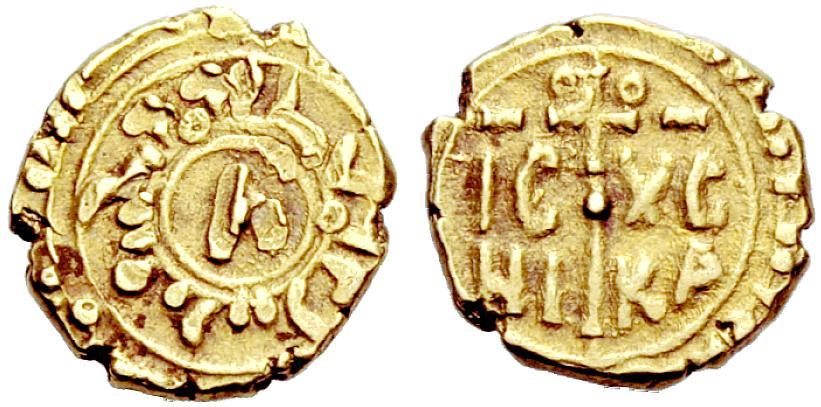 Messina. Tancredi 1189-1194. Multiplo di tarí. AV 1,71g. Doppio giro di leggenda, l’esterna cufica e l’interna araba, intorno a cerchio lineare entro cui L. Rv. Lunga croce astile accantonata in alto da due anelletti e in basso da IC – XC / NI – KA. Spahr 131. MIN 384. MEC 14, cf. 439. Raro. Leggermente mosso di conio al dr., altrimenti buon BB