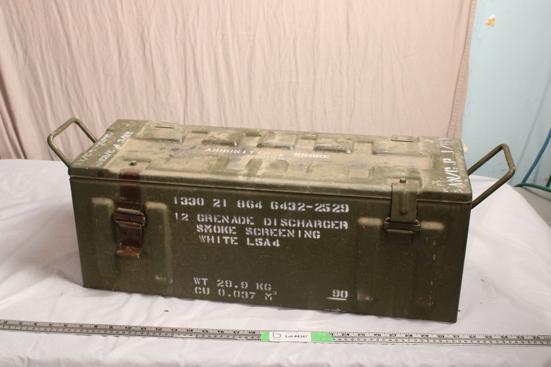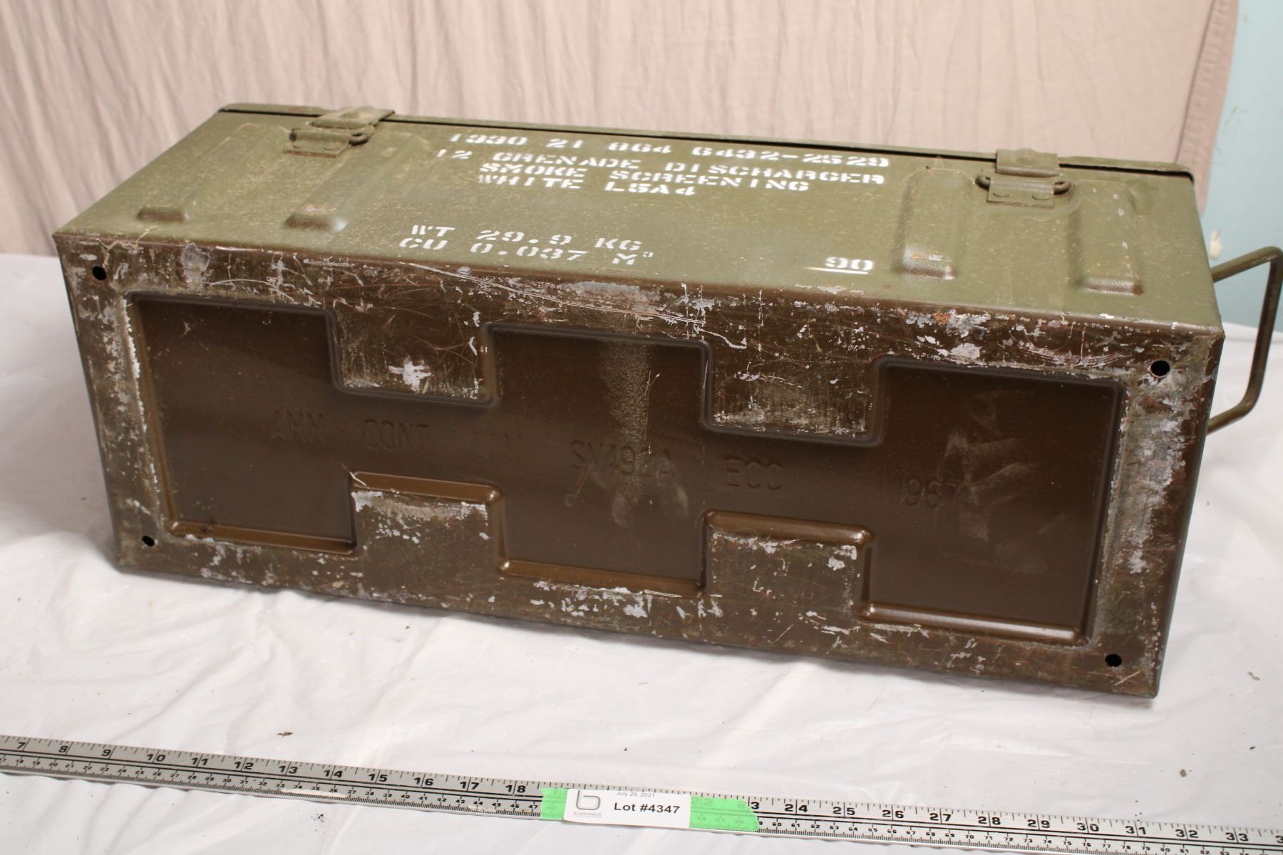 Metal Army Crate 26”L, 9.5”W, 9.5”T (date stamped 1967)