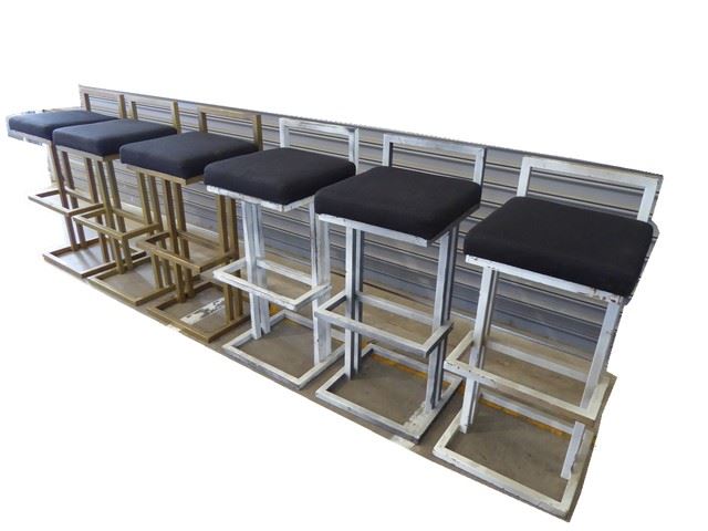 Assorted/Paintable - Metal Barstool Frames w/ assorted Cushions Dims: 2 styles: (1) 18"W x 12"D x 29 1/2"H (2) 16"W x 14.5"D x 34.5"H *sold in assorted sets of 6