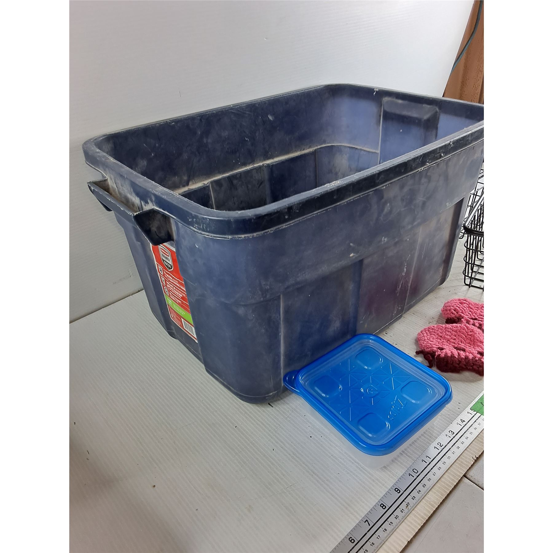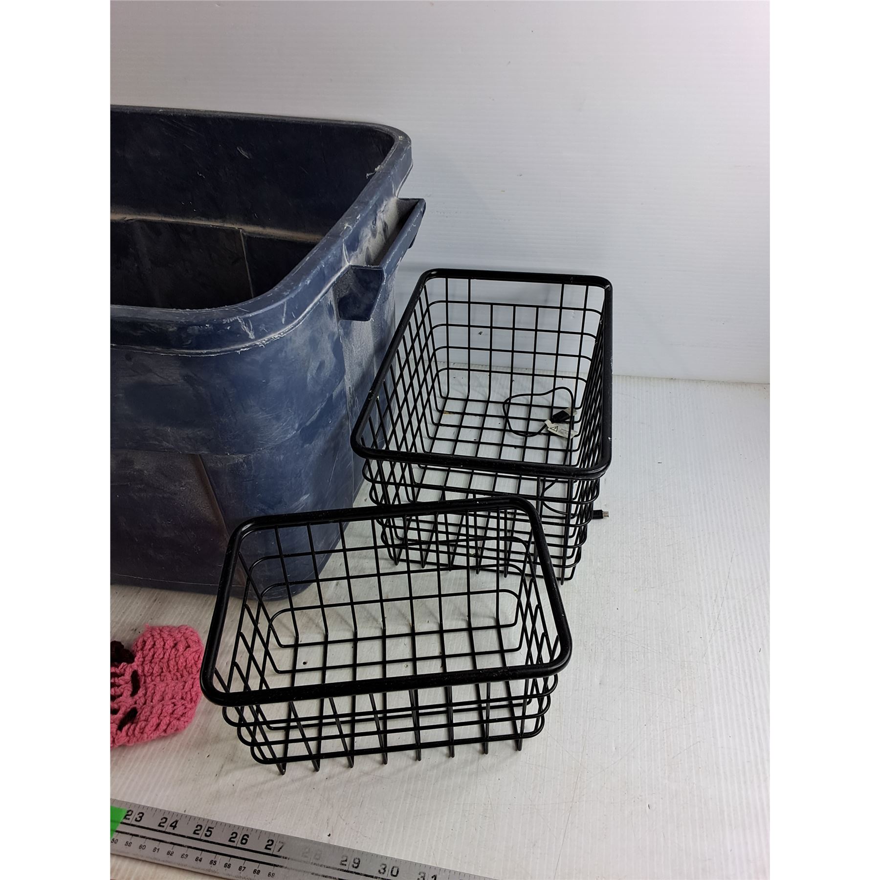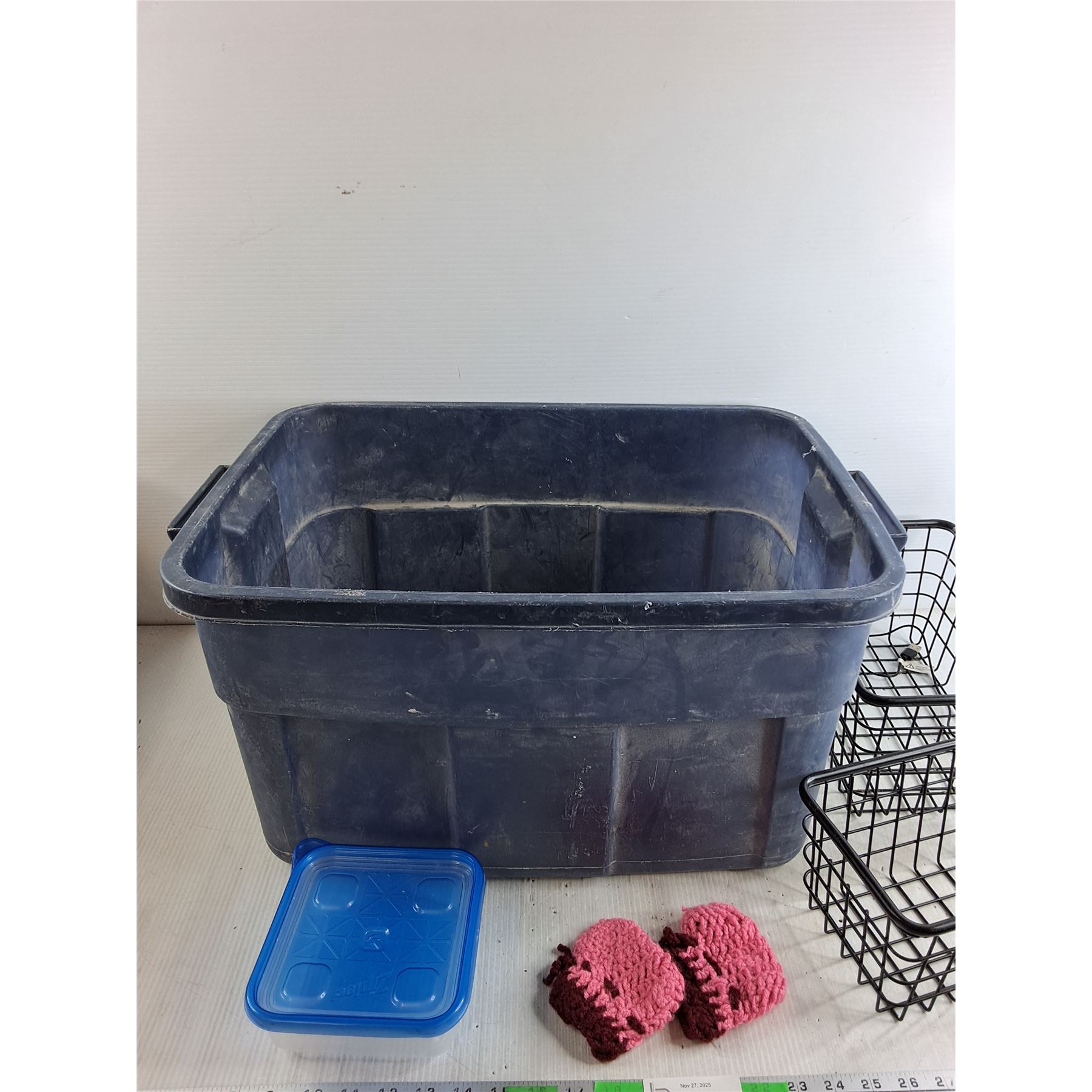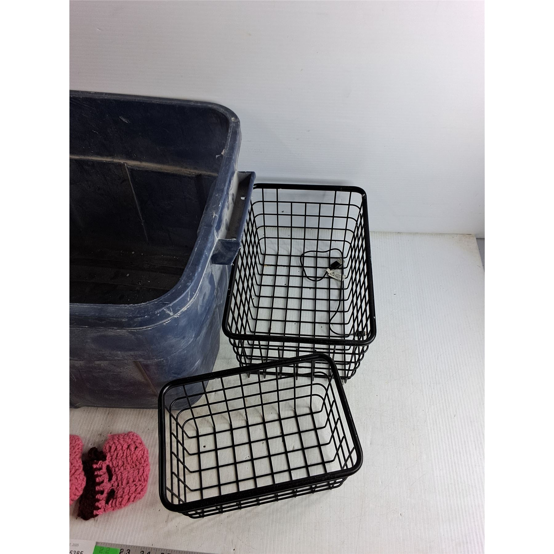 Metal Baskets, Infant Knitted Socks, Plastic Storage Tote 21" x 15" x 12" Ziploc Container, No Ship