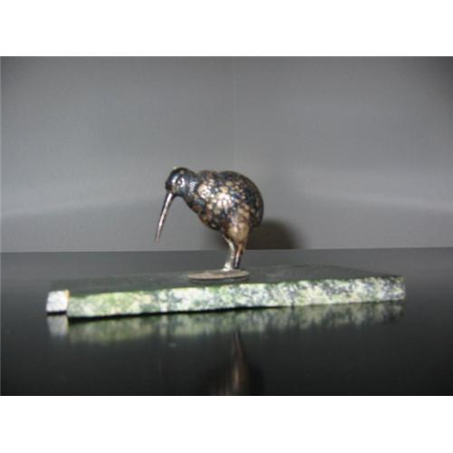 fine metal bird on green thin slab natural stone.it is vintage with excellent condition. the bird has magnificent detail with a plate which standing on it screwed to the stone. it is decorative and collectible. measures 2.5 inch tall, 5 inch wide and 2 inch on the side. stone .5 deep. it is lovely. prized for collectors.