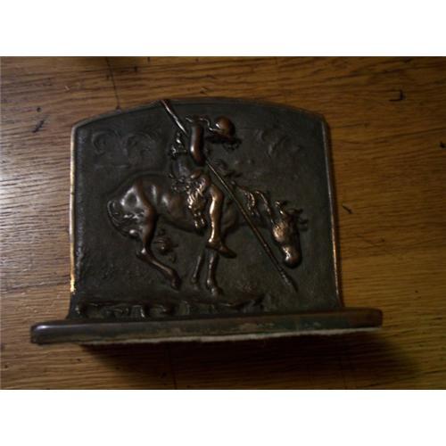 Great pair of old metal bookends.The scene is called I believe "The Last Trail" or "The End of The Trail"Measure 4 3/4" tall and in very good condition.Great for the Western decorator.