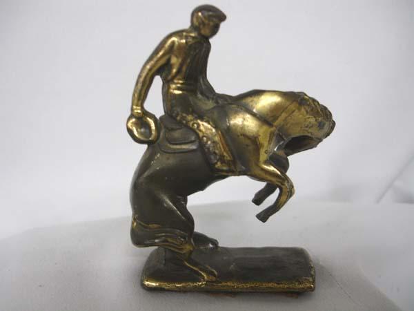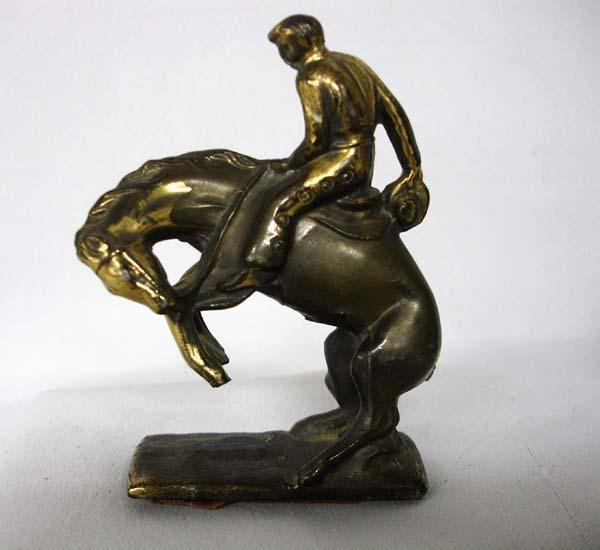 Metal Bronc Rider Statue, measures 3.5''H x 2.75''. Buyers Pay Actual Shipping and Handling Charges(see terms and conditions for more information).