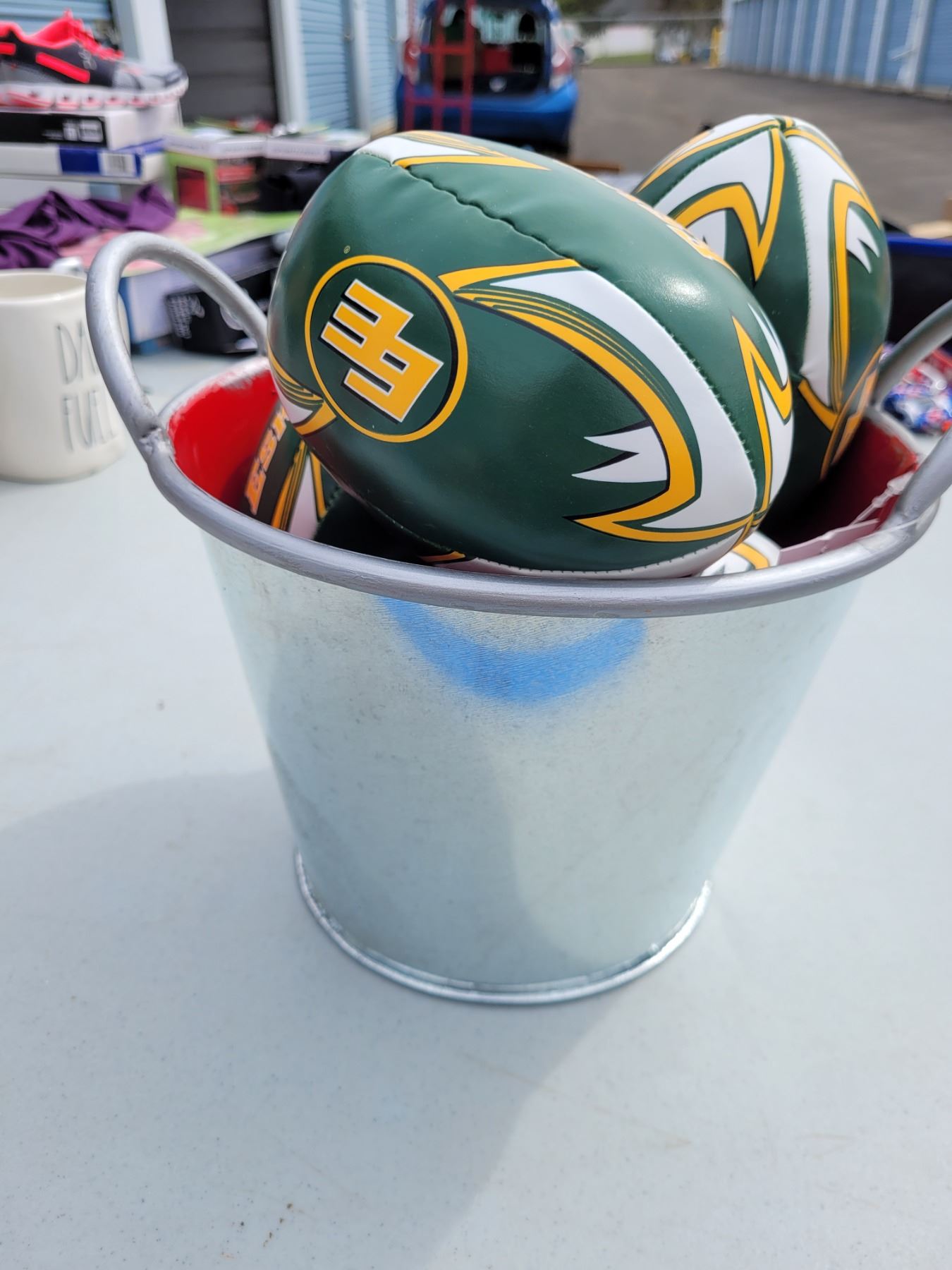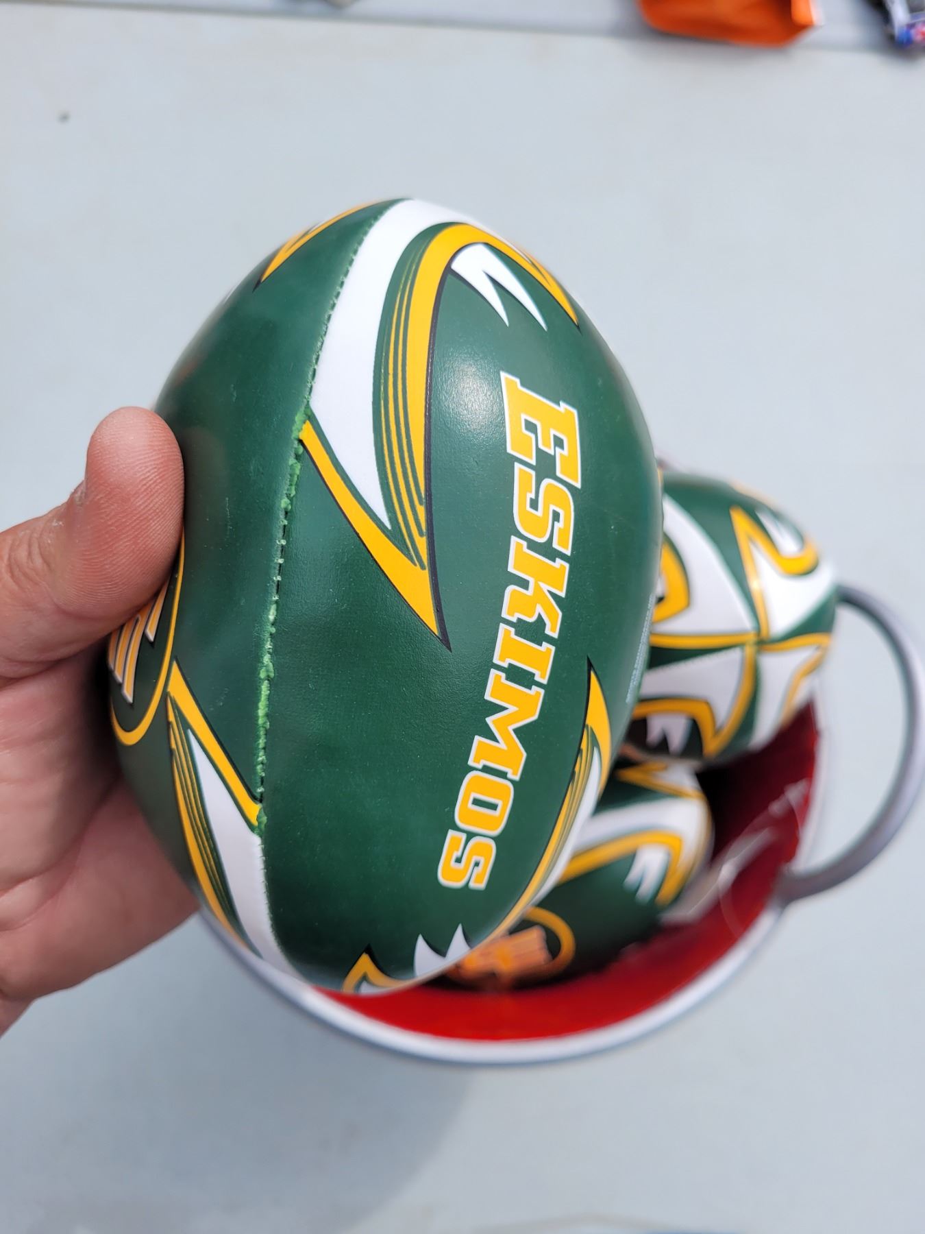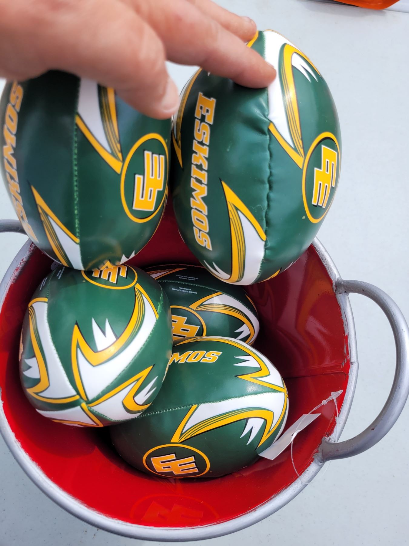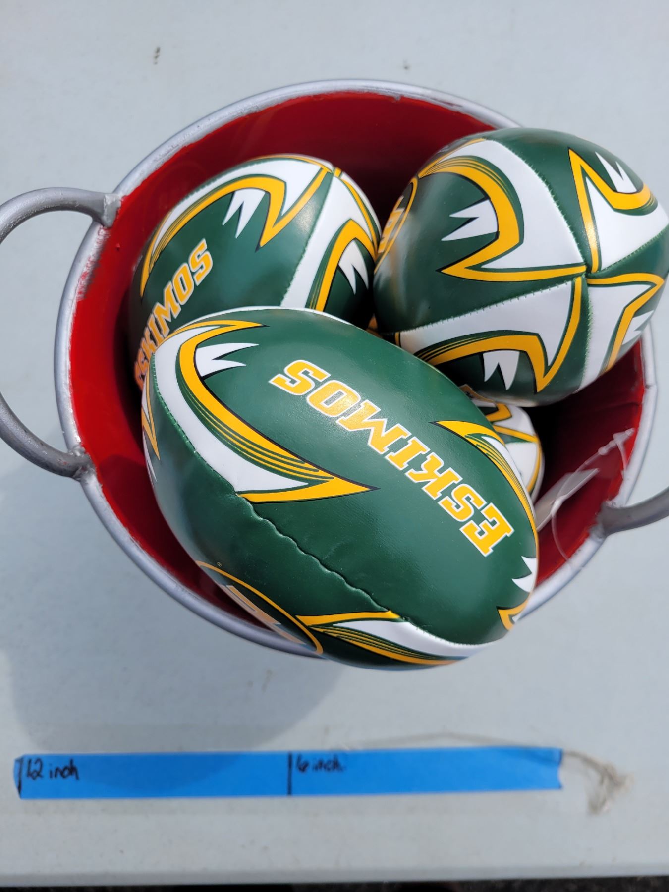 Metal Bucket with Small Edmonton Eskimos CFL Balls