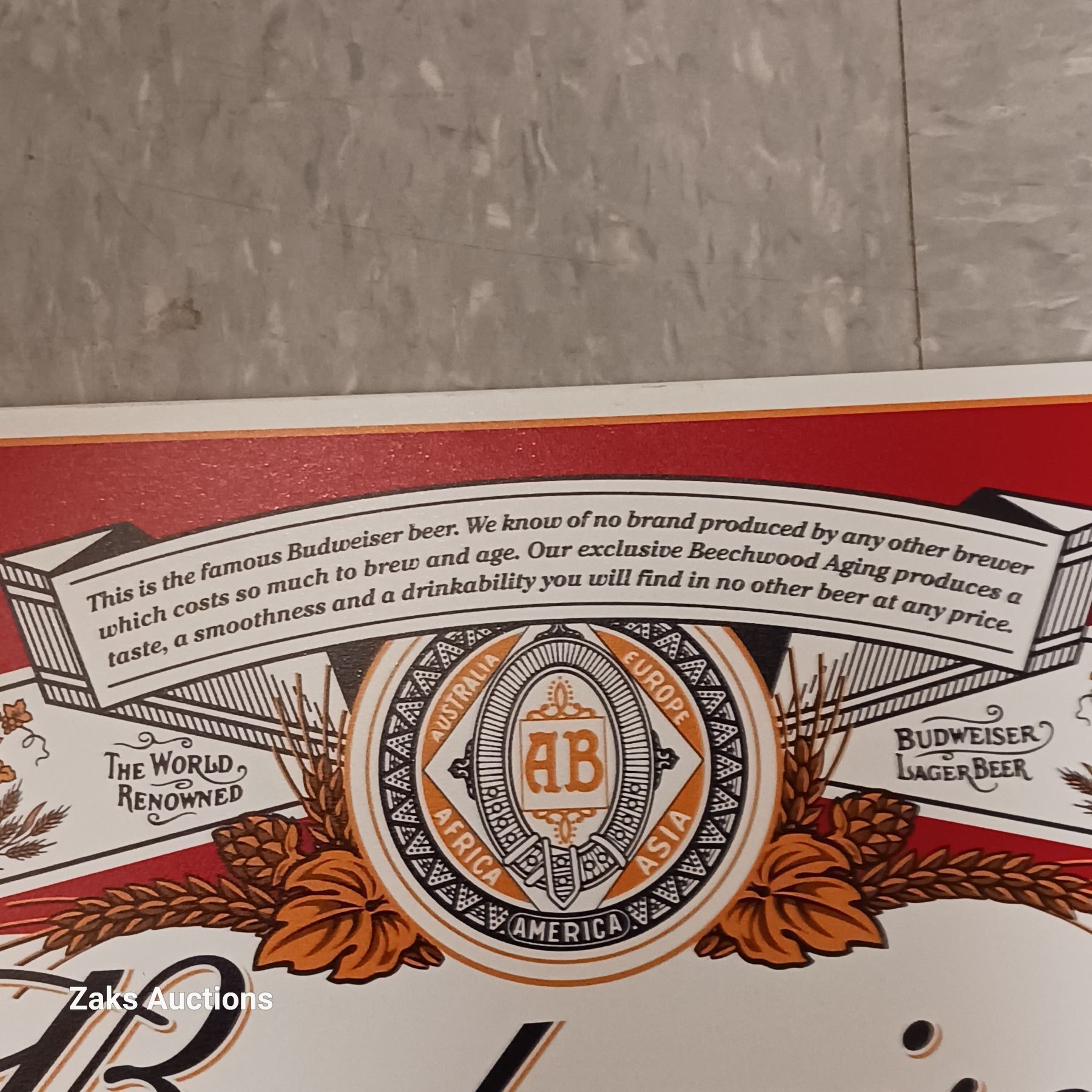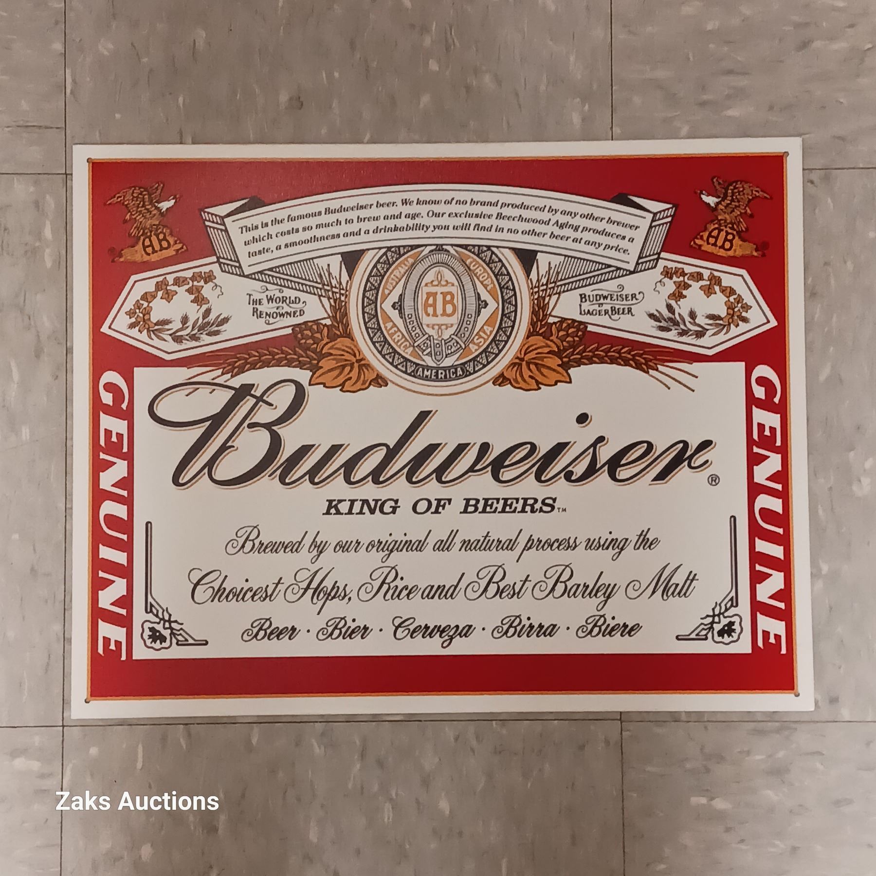 Metal Budweiser King of Beers Sign. Floor tiles in background are 12x12"