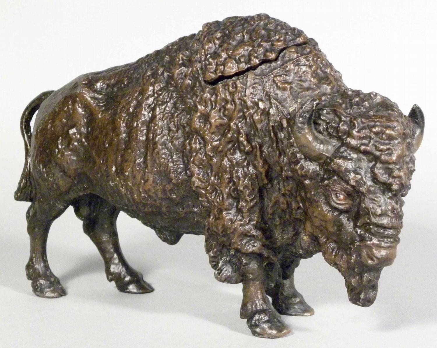 Metal Buffalo Ink Well. Excellent condition. 8 X 5 1/2 X 3 inches. Starting bid $100