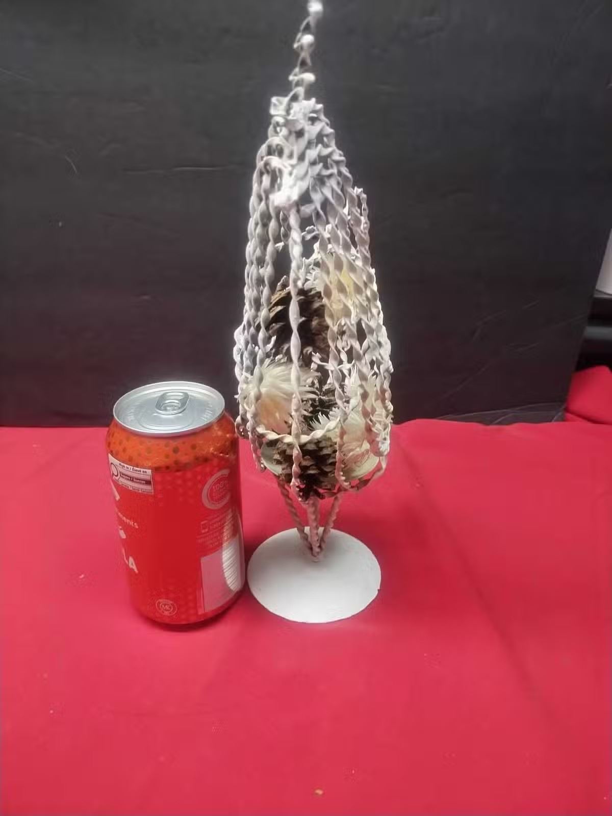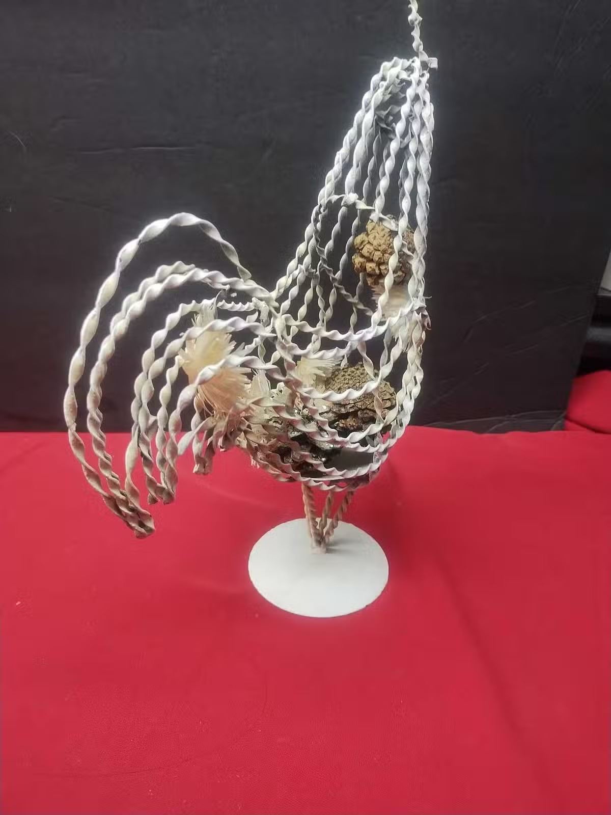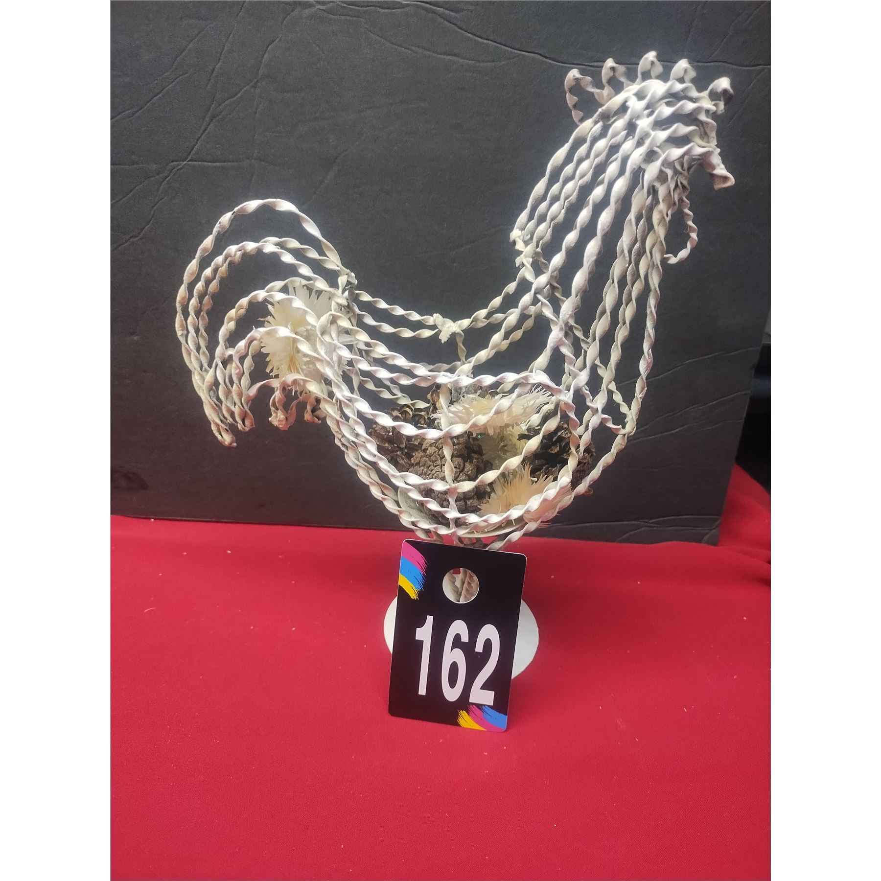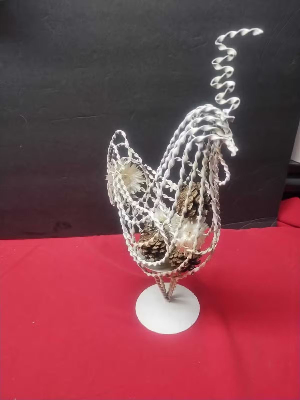 In great shape, 12 inches tall can be filled with items or in center you could place a candle. This came from a tv show called the chicken sisters