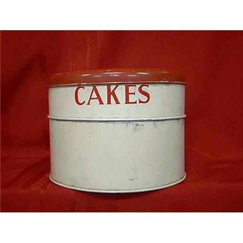 Cake saver or storage container made of metal and has 2 layers for storage. Measures 9 inches wide and 7 inches high and is in very good condition. All in red and white color with the word “Cakes” printed across the front of the cake keeper. Marked, “Tala”, Made in England.