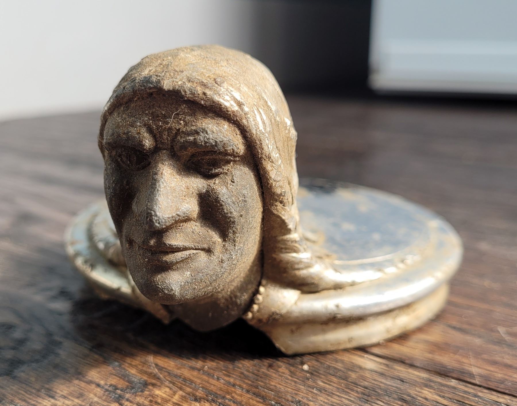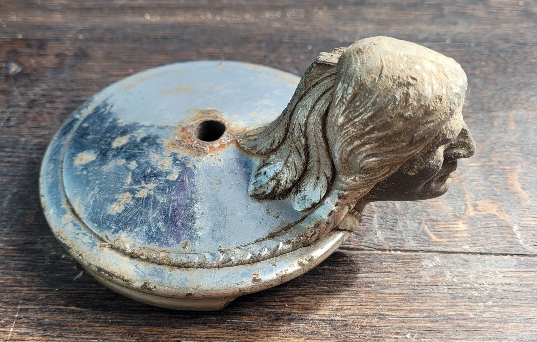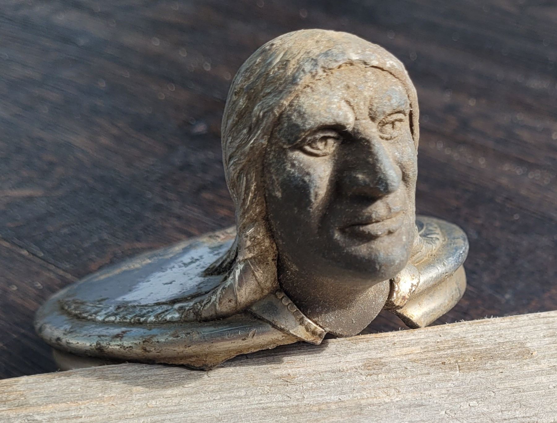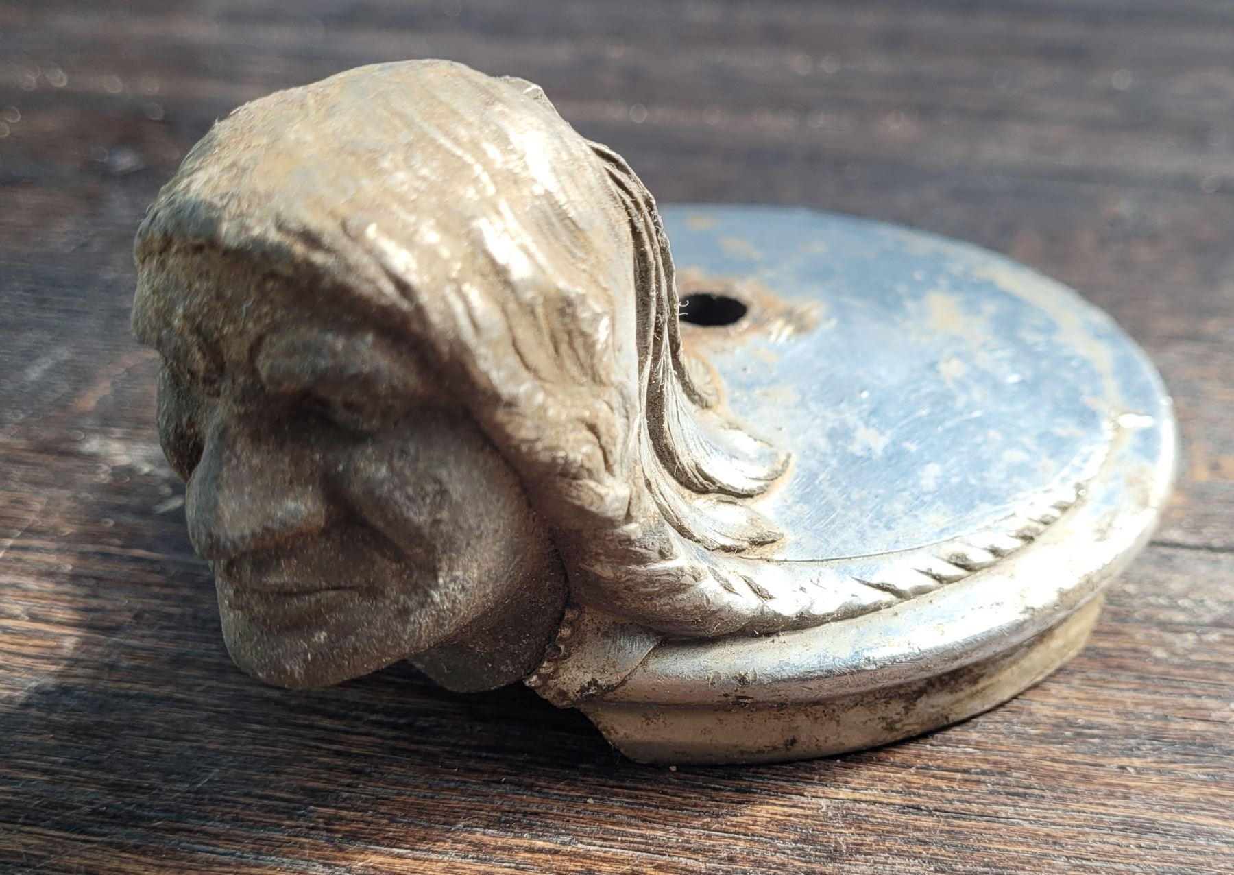 Metal Casting Chief - possibly radiator cap - 3 3/4" diameter x 2 3/4" tall