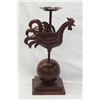 Metal Chicken on Top of the World Candleholder, has that weather vane look about it, measures 7'' x 11'' x 18''