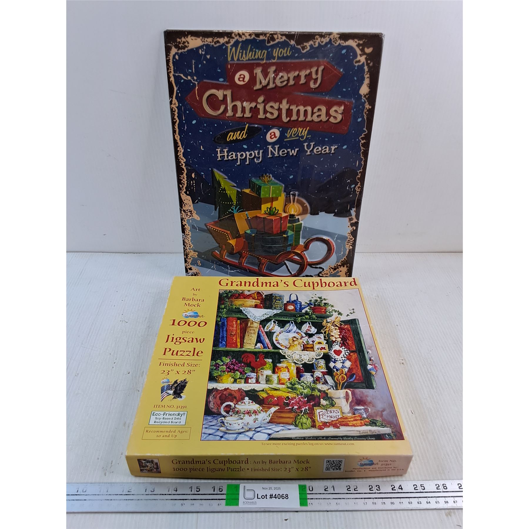Metal Christmas Sign-12 x16  and 1000 Piece Puzzle