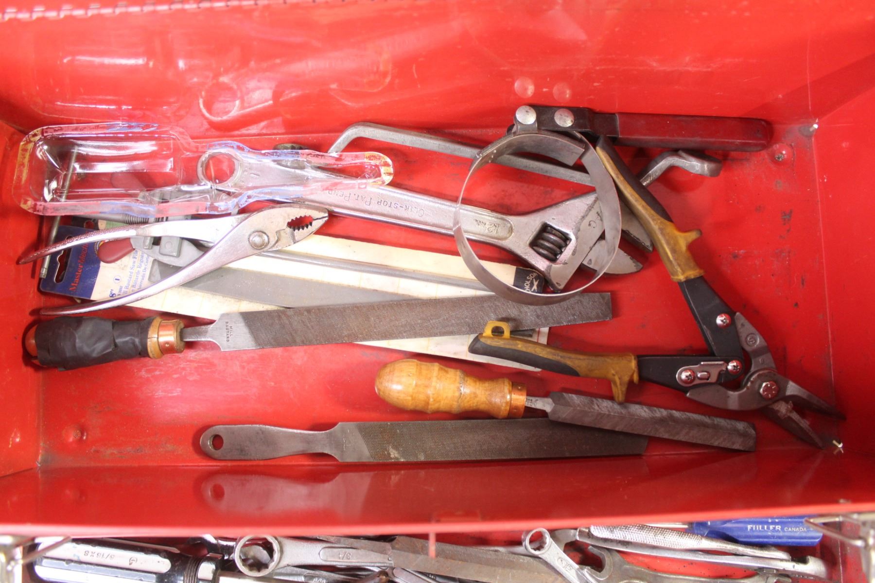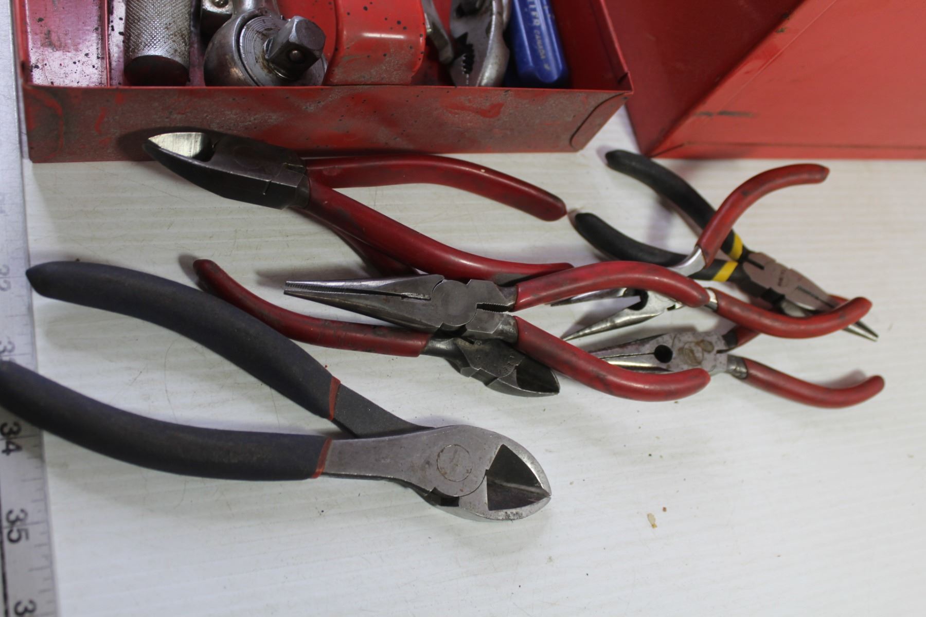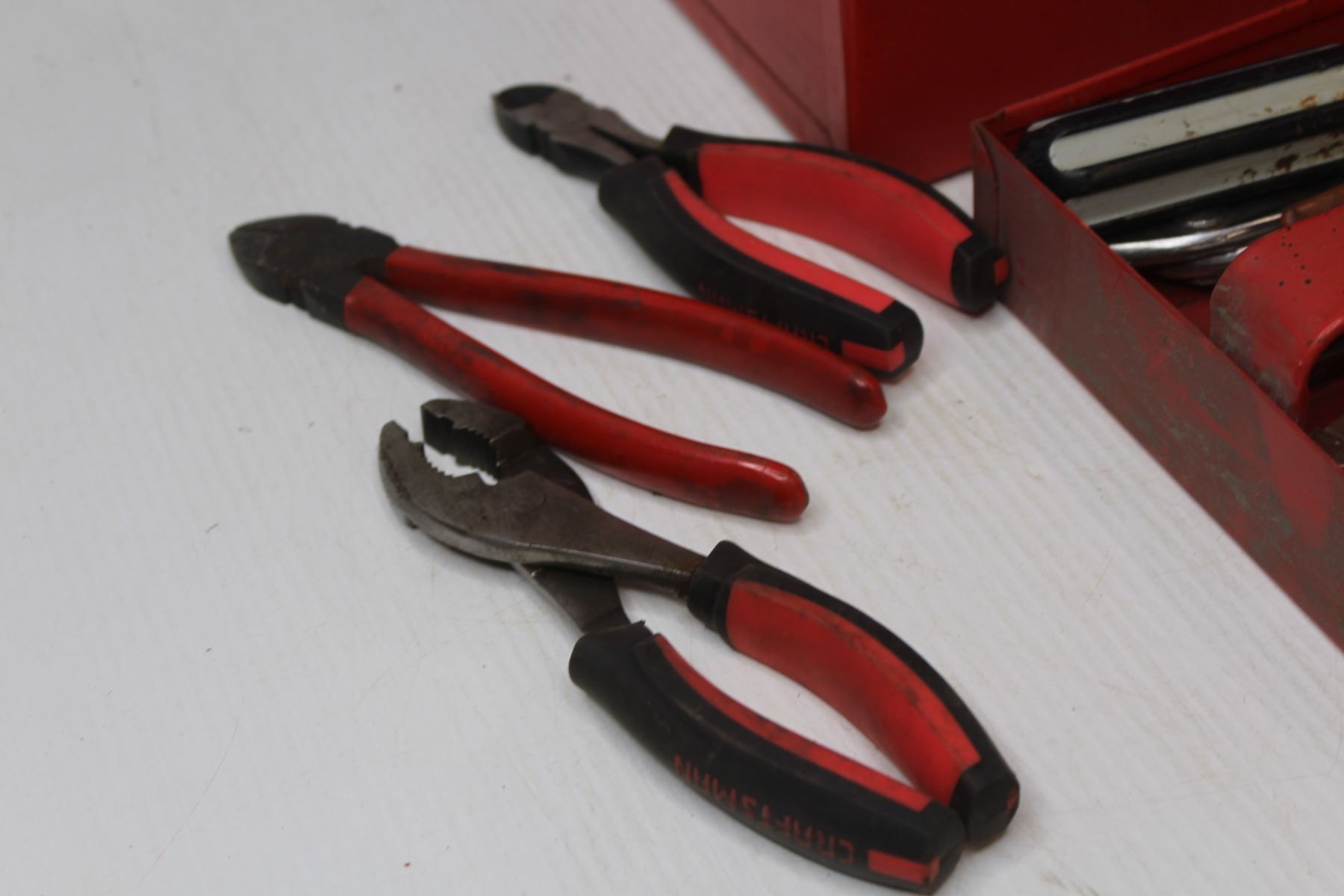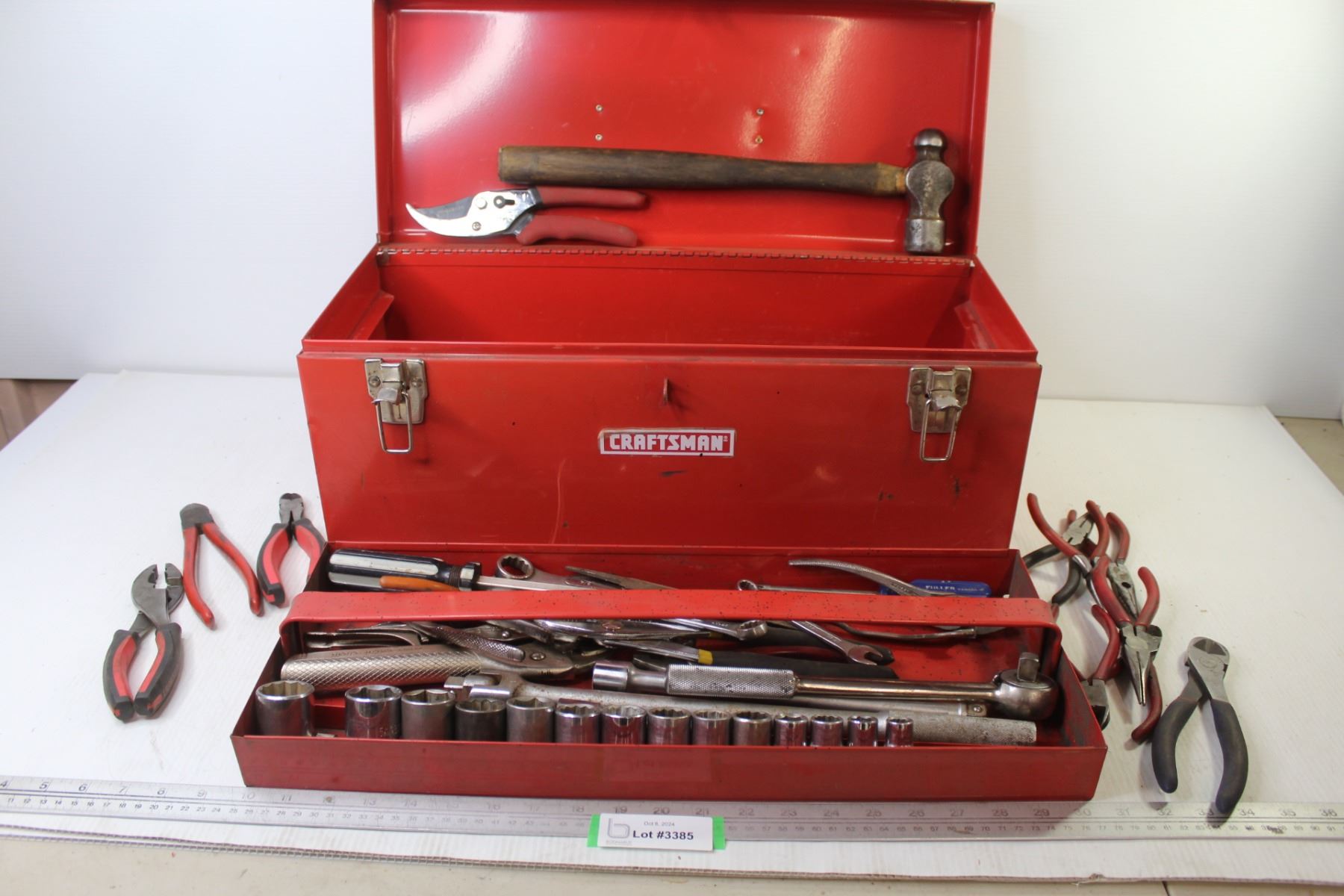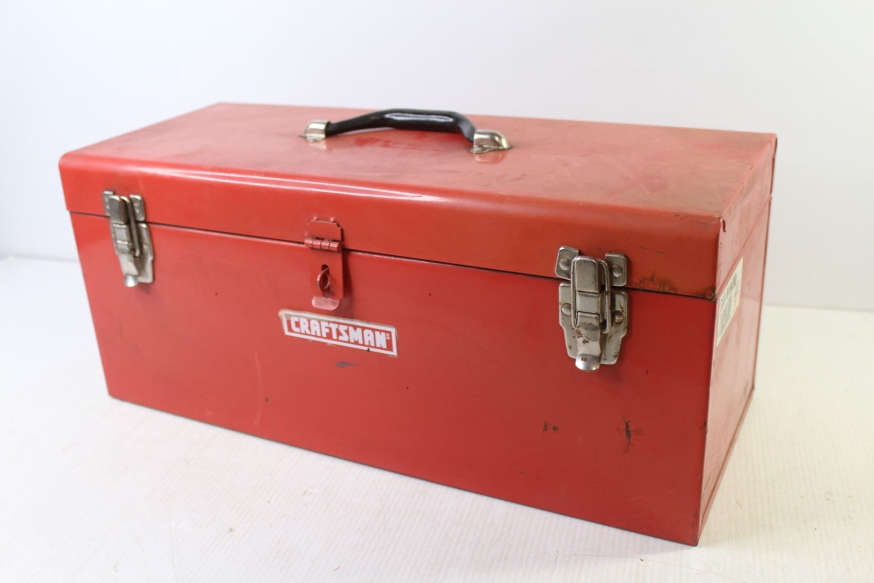 Metal Craftsman Tool Box w/Contents - Side Cutters - Pliers - Standard Sockets Files - Ball Pean Hammer - Misc. Items
