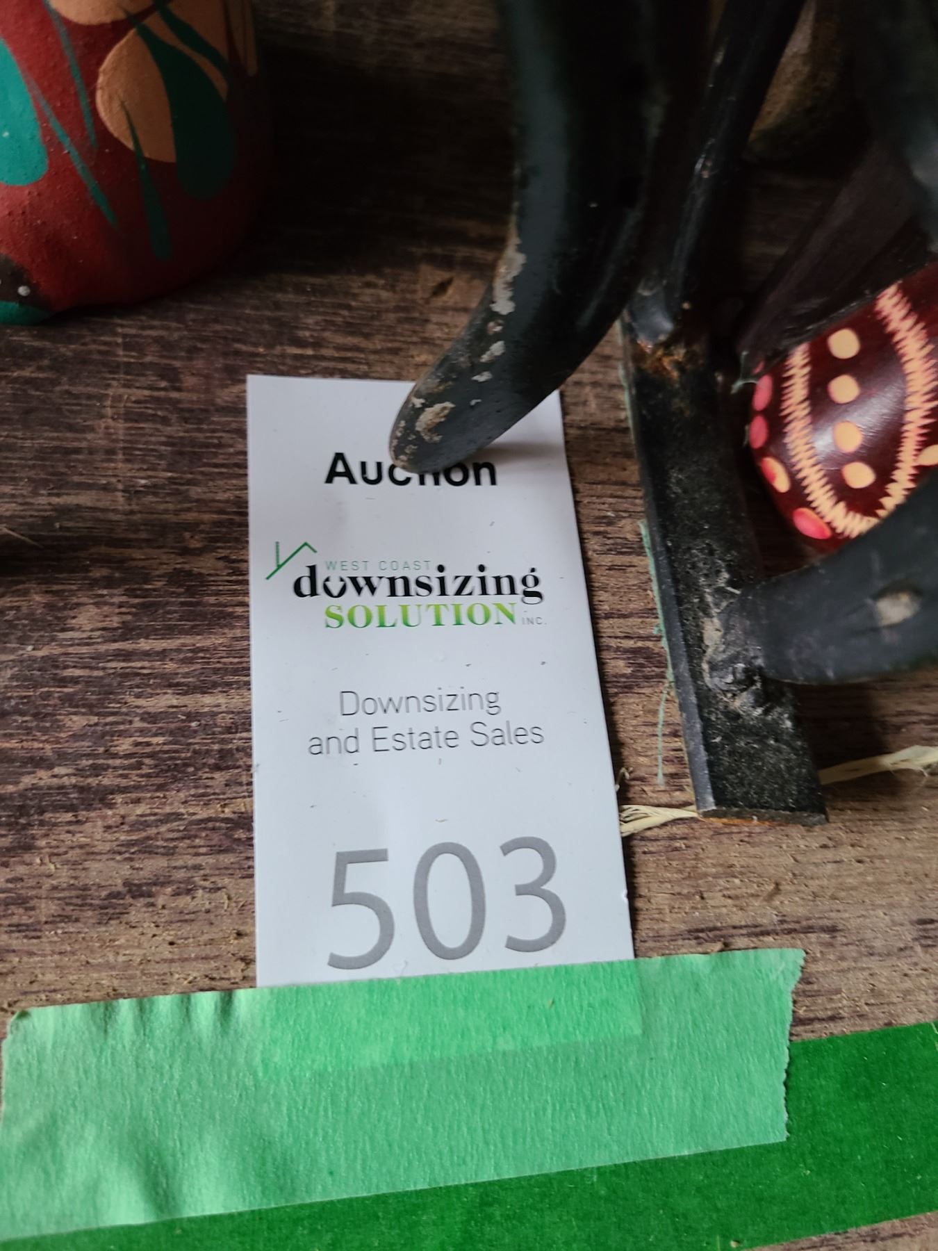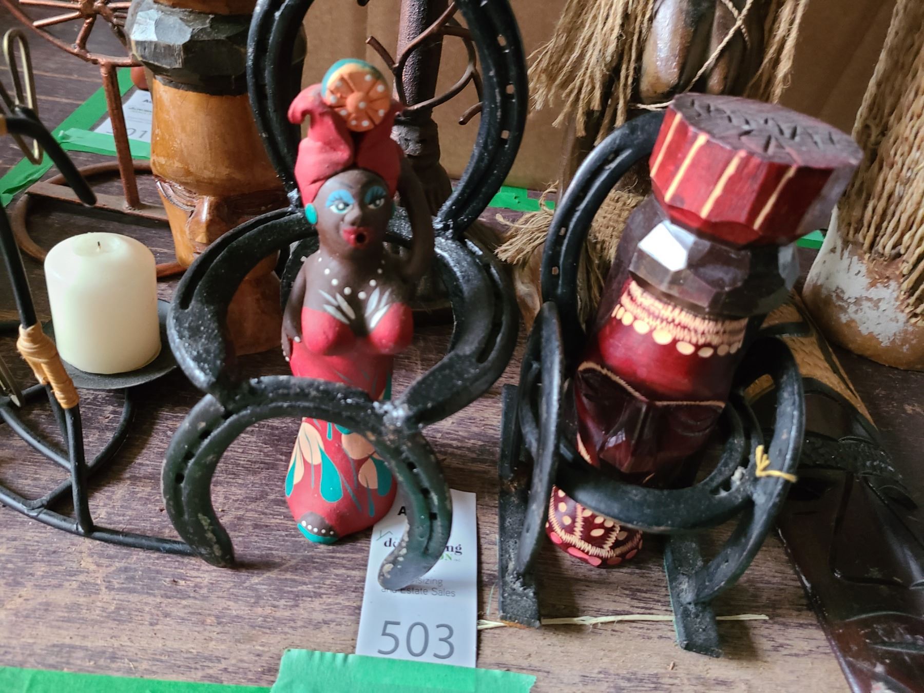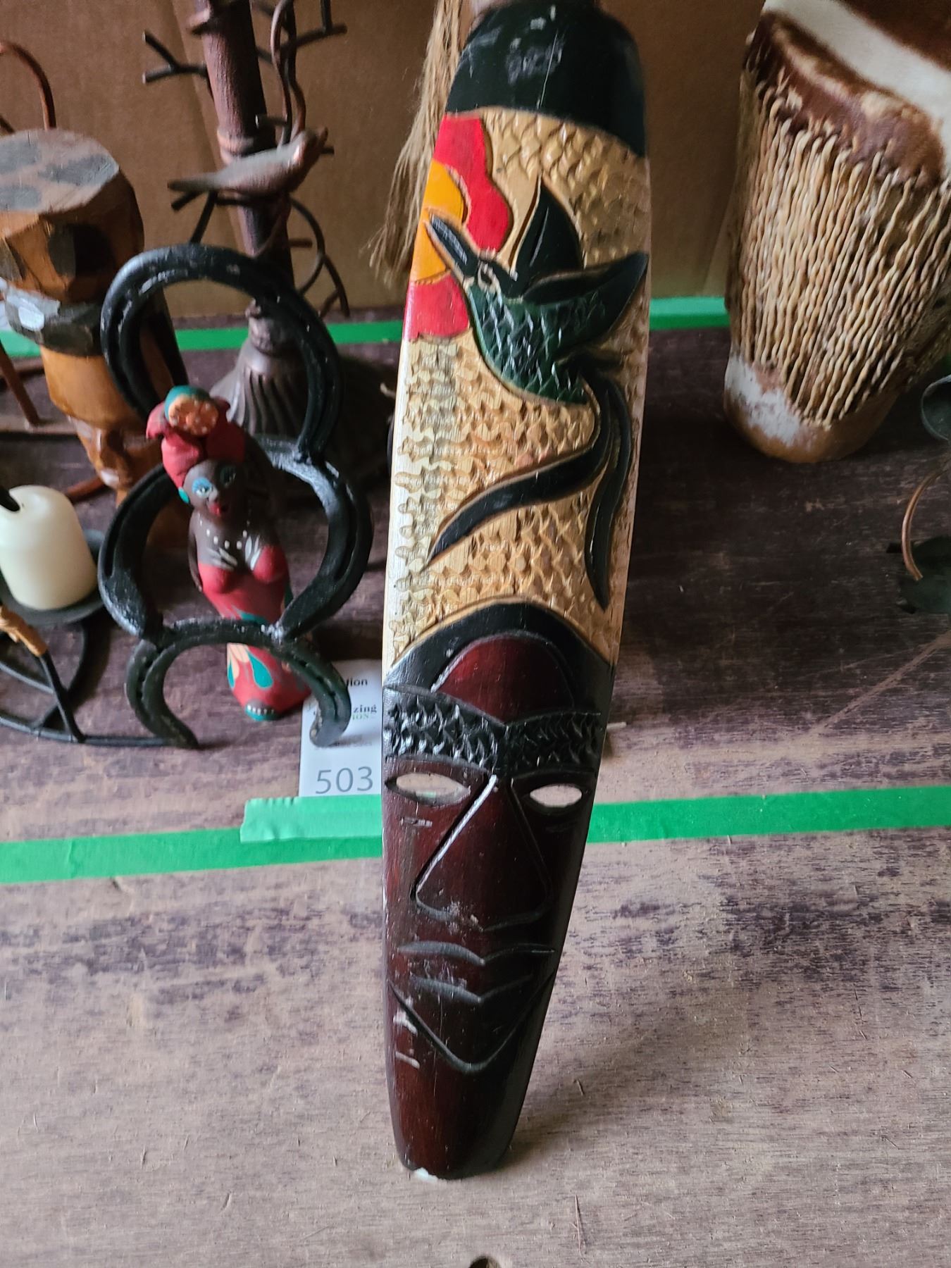 Metal African style decor including drums, candle holders and mask. Bring packing supplies. Pickup at 9 am.