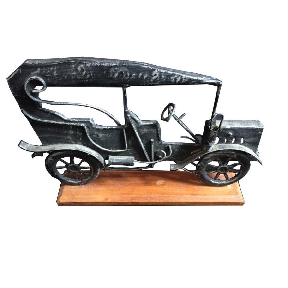 Vintage office, desk or display case decoration. Ford's Model T, standing metal artwork, mounted on wooden plaque. 11" W X 7 1/2" X 2" D.
