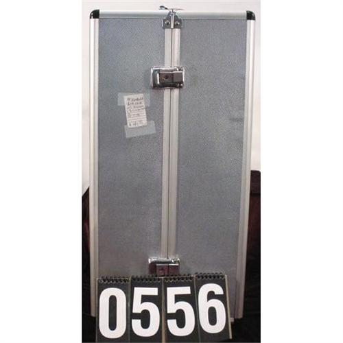 A Metal Doll case with two draws, bar for hangers, and extra compartment for clothes and such. In good condition. Dimensions are 19.5" x 10" x 9" and weighs 6 pounds. [81]