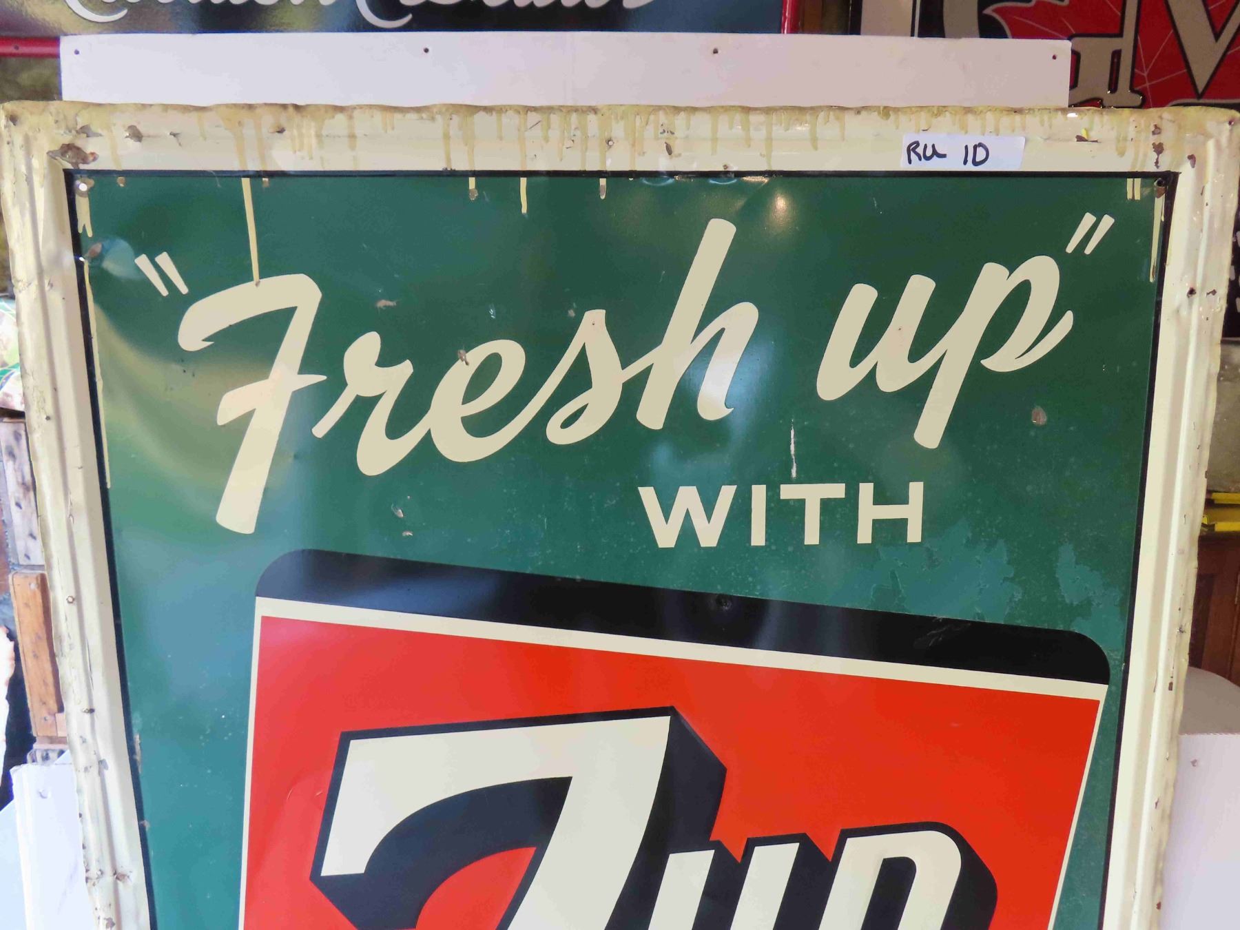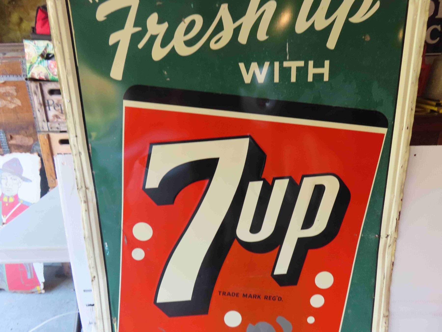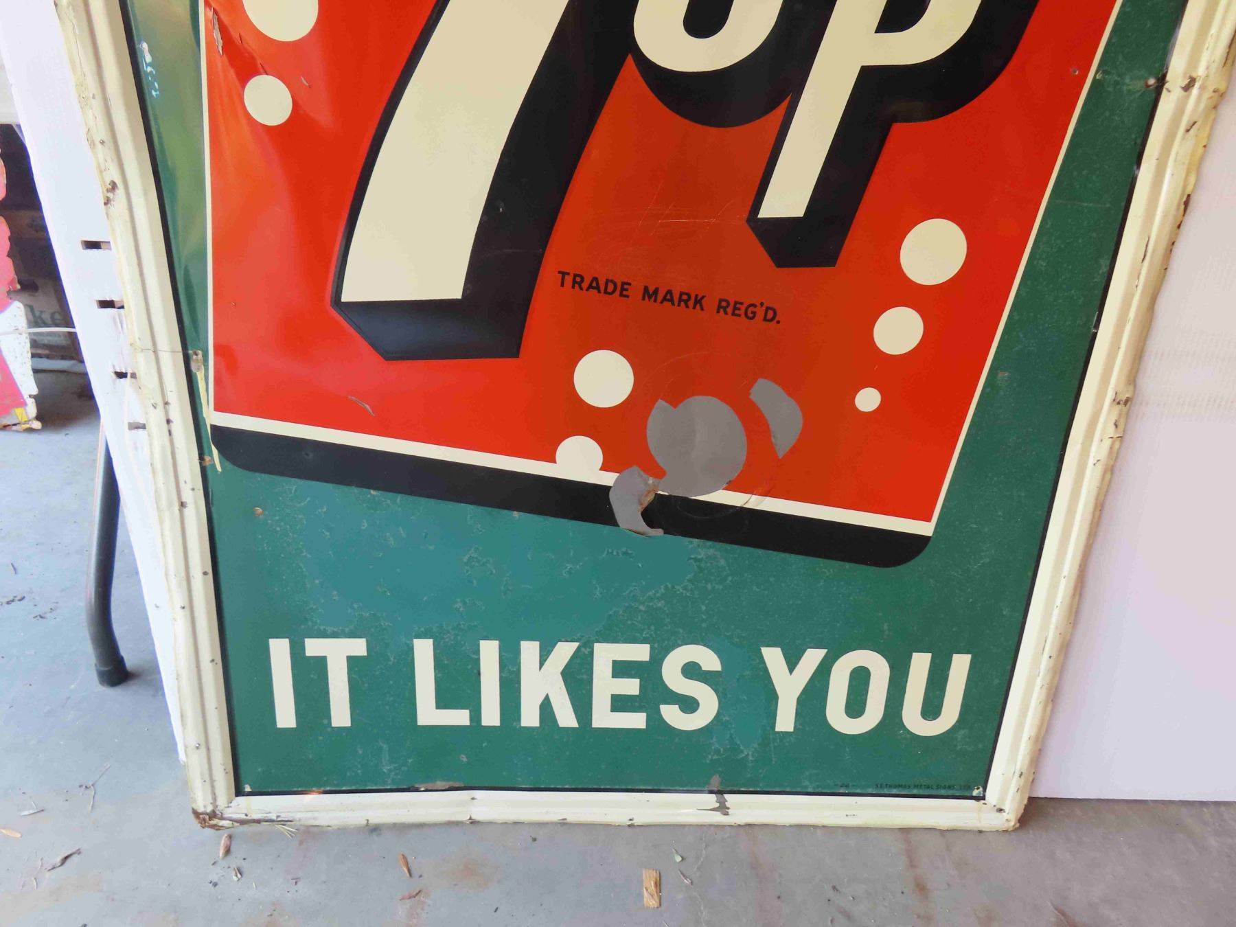 Metal Embossed 7UP Sign Self Framed St Thomas Metal from Late 1940s - Early 1950s 35'' x 60''